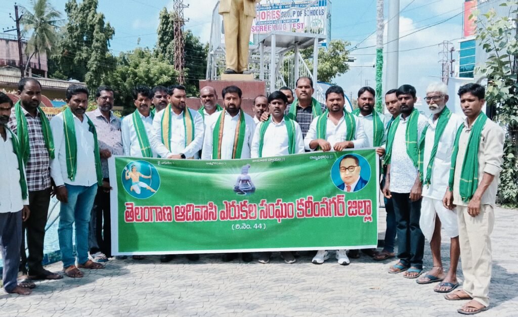 తెలంగాణ ఆదివాసి ఎరుకల సంఘం జిల్లా అధ్యక్షులు కుతాడి శ్రీనివాస్ ఆధ్వర్యంలో ఆదివారం కరీంనగర్ కోర్టు చౌరస్తాలోనీ అంబేద్కర్ విగ్రహం వద్ద నిరసన కార్యక్రమం నిర్వహించారు.