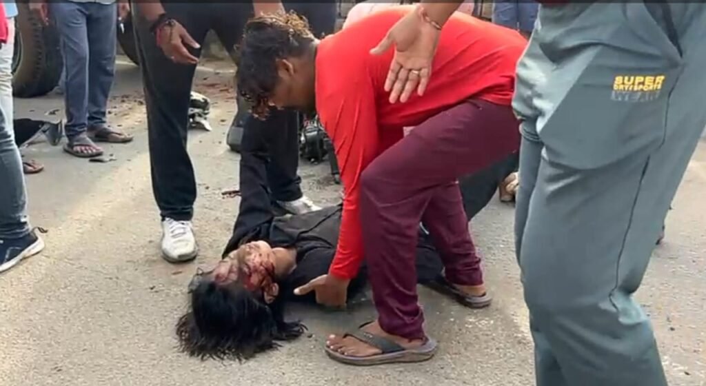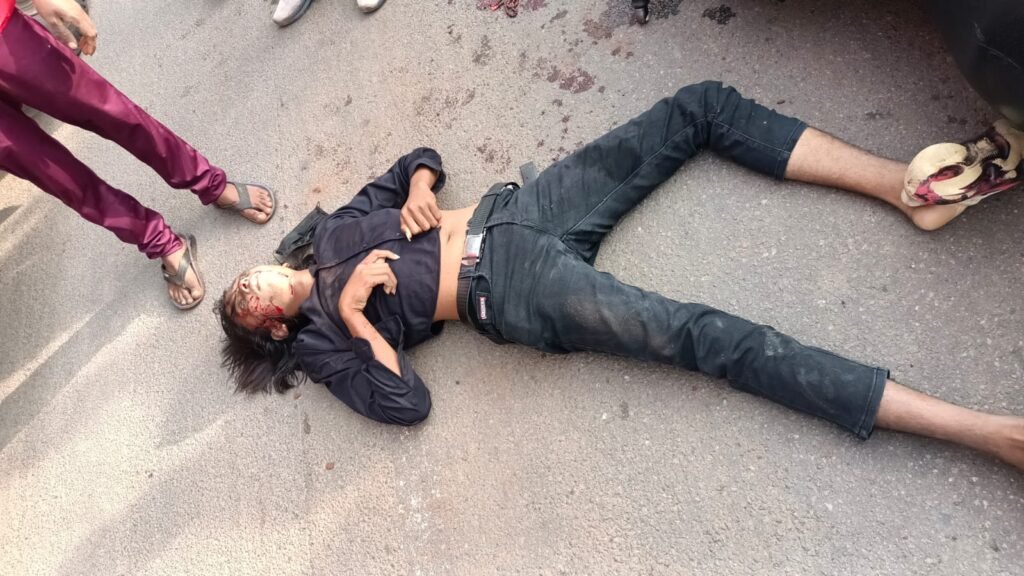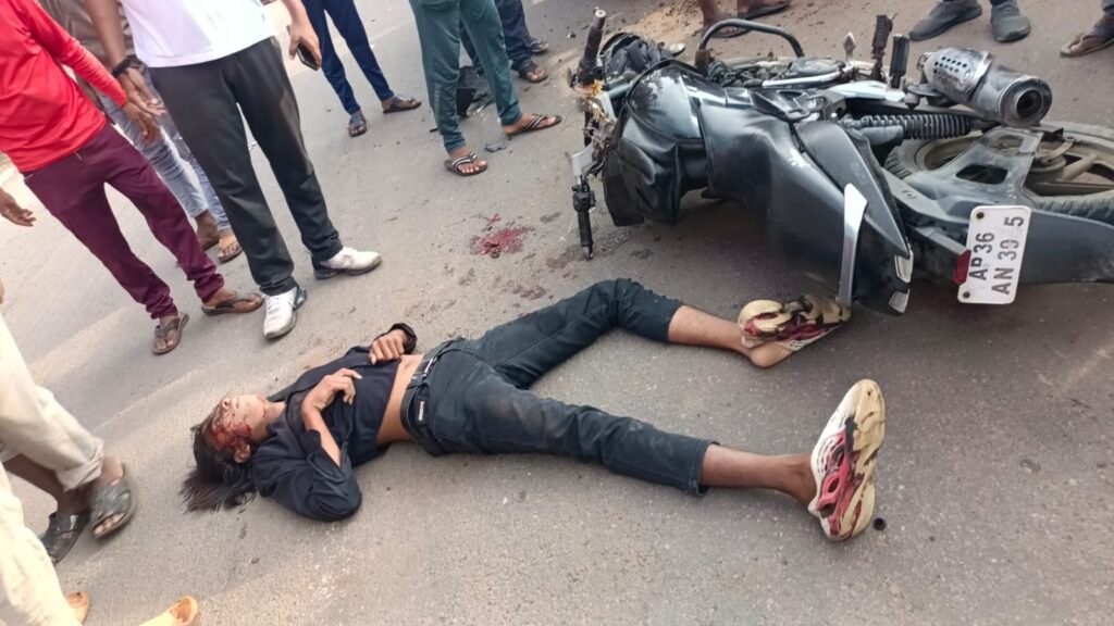 మున్సిపల్ ట్రాక్టర్ ను ఢీకొని నడిరోడ్డుపై తీవ్రగాయాలతో పడిన వేముల అక్షయ్ సాయి..