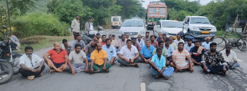 మండల యాదగిరి, స్వర్ణోదయం ప్రతినిధి, హుజురాబాద్: కరీంనగర్ జిల్లా హుజురాబాద్ మండలం సింగాపూర్ గ్రామం వద్ద డిబిఎల్ కంపెనీ నిర్లక్ష్యం వల్ల వంటలు నష్టపోయిన రైతులు గురువారం జాతీయ రహదారిపై ధర్నా, రాస్తారోకో నిర్వహించారు. ఈ సందర్భంగా వారు మాట్లాడుతూ… డిబిఎల్ కంపెనీ చేస్తున్న రోడ్డు నిర్మాణ పనులు ఆలస్యంగా చేయడం వల్ల రైతులు తీవ్రంగా పంటలు నష్టపోయారని అన్నారు. పనులు చేయడంలో నిర్లక్ష్యం వల్ల 150 ఎకరాల వరి పంట రైతులు నష్టపోయారని దీనికి నష్టపరిహారం ఎవరు చెల్లిస్తారని వారు ప్రశ్నించారు. సింగపూర్ చెరువు వద్ద సరైన బ్రిడ్జి నిర్మాణం చేయకపోవడం వల్ల రైతులు నష్టపోవాల్సి వచ్చిందన్నారు. రైతులు చేపట్టిన ధర్నా వల్ల ప్రధాన రహదారిపై రాకపోకలకు తీవ్ర అంతరాయం కలిగింది. రైతుల ధర్నా సమాచారం తెలుసుకున్న హుజురాబాద్ టౌన్ సిఐ కరుణాకర్ తన సిబ్బందితో వెళ్లి రైతులతో మాట్లాడి వారిని శాంతింప చేశారు. దీంతో రైతులు ధర్నా విరమించారు. ఈ కార్యక్రమంలో తుమ్మనపల్లి సింగిల్ విండో చైర్మన్ కౌర్ సుగుణాకర్ రెడ్డి, గ్రామ రైతులు పాల్గొన్నారు.