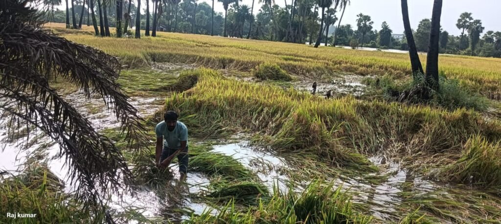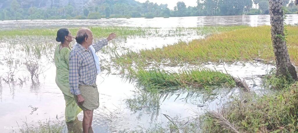 మండల యాదగిరి, స్వర్ణోదయం ప్రతినిధి హుజురాబాద్: కుటుంబ పోషణకై ఇతరుల పొలాన్ని కౌలుకు తీసుకొని వ్యవసాయం చేసిన కౌలు రైతులను అకాల భారీ వర్షం చేతికి అంది వచ్చిన సమయంలో నిండా ముంచింది. బుధవారం ఉదయం నుండి రాత్రి వరకు మొoథా తుఫాన్ కారణంగా కురిసిన అతి భారీ వర్షం వల్ల హుజురాబాద్ పట్టణంలోని గుండ్ల చెరువు, మోడల్ చెరువు వరద నీటితో పొంగి పొర్లాయి. హుజురాబాద్ పట్టణంలో బుధవారం 24.5 సెంటీమీటర్ల వర్షం కురవడంతో చిలకవాగు ఉధృతంగా పొంగి ప్రవహించడంతో రంగనాయకుల గుట్ట సమీపంలో ఉన్న పలువురు కౌలు రైతుల పోలాలు నీటితో నిండిపోయాయి. మరో రెండు రోజులైతే వరి కోతలు చేసి తాము కౌ లుకు తీసుకున్న దానికి ఫలితం ఉండేదని, రోజంతా కురిసిన వర్షంతో తాము మూడు నెలల పాటు పడిన కష్టం అకాల వర్షం నీటితో పొలం నిండడంతో ఆశలు నిరాశలయ్యాయని అన్నారు. రైతులు పంట నష్టపోతే ప్రభుత్వం నుండి ఏదో రకంగా నష్టపరిహారం లభిస్తుంది కానీ కౌలు రైతులకు నష్టం జరిగితే వారికి ఎలాంటి నష్టపరిహారం ప్రభుత్వం ఇవ్వడం లేదు. దీంతో తాము ఆరుగాలం కష్టపడి పెట్టిన పెట్టుబడి అంతా నీటిలో కొట్టుకుపోయింది అని ఆవేదన వ్యక్తం చేశారు.