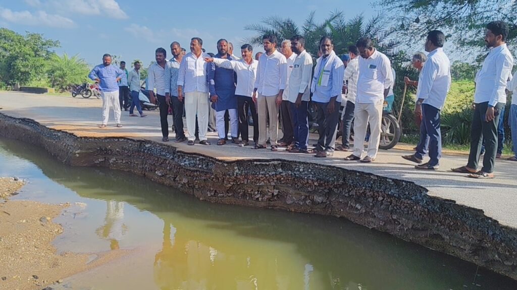 దెబ్బతిన్న రోడ్లను, పొలాలను పరిశీలిస్తున్న కాంగ్రెస్ నేత ప్రణవ్
