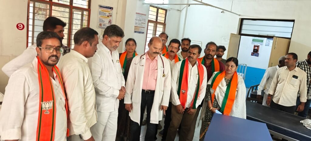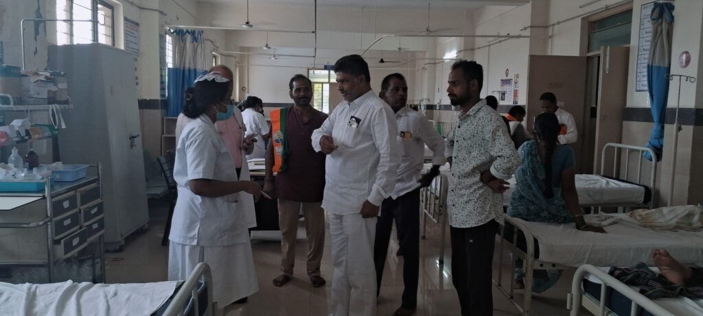 ఏరియా ఆసుపత్రిలో సౌకర్యాలను పరిశీలించి సూపర్డెంట్ నారాయణరెడ్డిని, వైద్య సిబ్బందిని వివరాలు అడిగి తెలుసుకుంటున్న బిజెపి జిల్లా అధ్యక్షుడు గంగాడి కృష్ణారెడ్డి, బిజెపి నాయకులు..