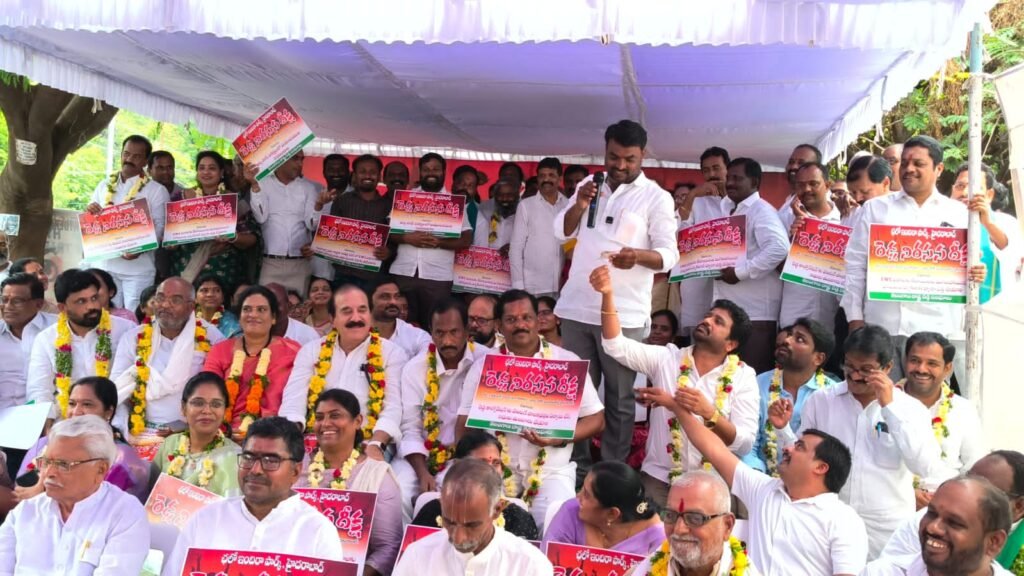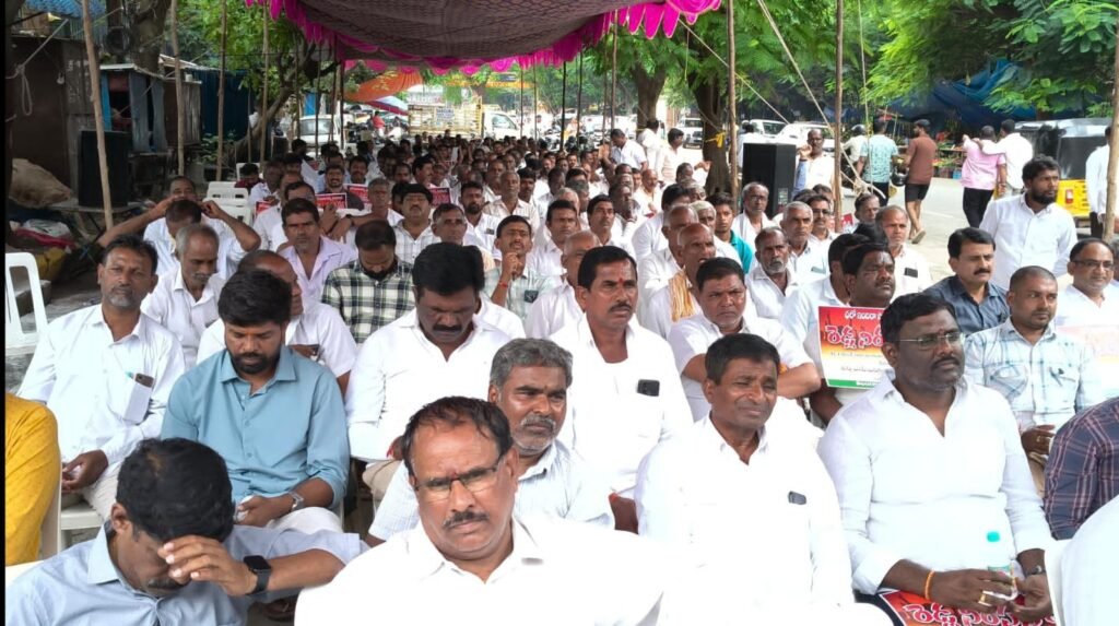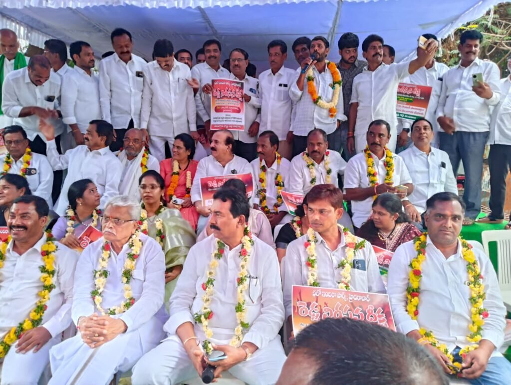 ఇందిరాపార్కు వద్ద గల ధర్నా చౌక్ లో నిరసన దీక్ష చేపట్టి ధర్నా నిర్వహిస్తున్న రెడ్డి, ఓసీ సంఘాల ఐకాస నాయకులు
