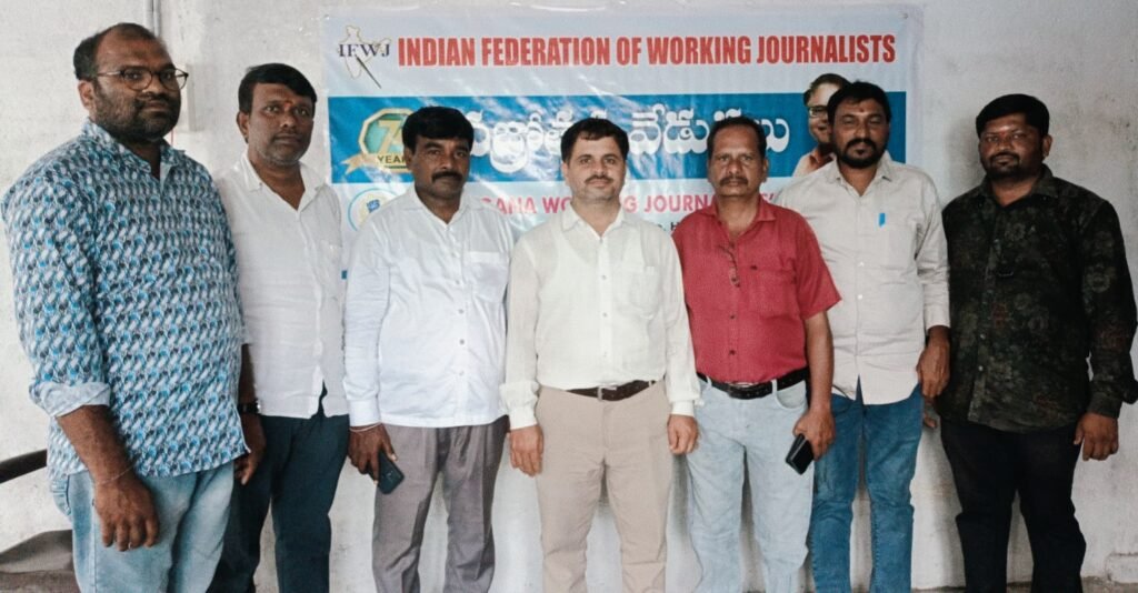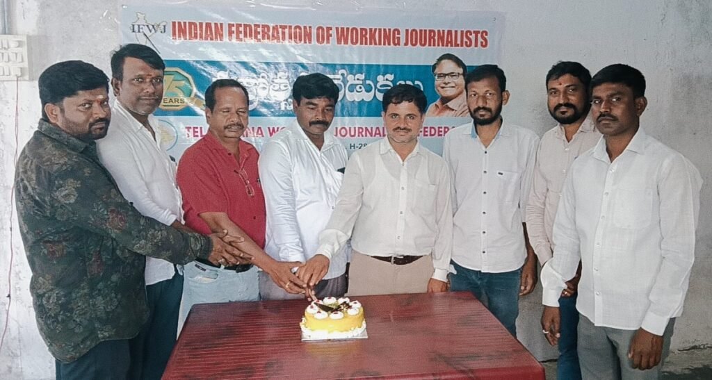 ముందుగా జాతీయ అధ్యక్షుడు కామ్రేడ్ డాక్టర్ కె. విక్రమ్ రావుకు ఘనంగా నివాళులర్పించారు. అనంతరం బాపురావు మాట్లాడుతూ…ఐఎఫ్ డబ్ల్యూజే దేశంలోనే తొలి జర్నలిస్టు యూనియన్ అని, 1950 అక్టోబర్ 28న ట్రేడ్ యూనియన్ గా ఏర్పడిందన్నారు. దేశవ్యాపితంగా 30 వేలకు పైగా జర్నలిస్టులు సభ్యులుగా ఉన్నారని తెలిపారు. దేశంలోనే 28 రాష్ట్రాలతో పాటు శ్రీలంక, నేపాల్, భూటాన్ లోని జర్నలిస్టుల సంఘాలతో సంబంధాలు కలిగి జర్నలిస్టుల సమస్యలపై అంతర్జాతీయ స్థాయిలో కూడా పోరాటాలు చేస్తున్నదని పేర్కొన్నారు. జర్నలిస్టుల శ్రేయస్సు కోసం ఐఎఫ్ డబ్ల్యూజె కొన్ని ప్రధాన డిమాండ్లను అమలు చేయాలని ప్రభుత్వంపై ఒత్తిడి చేస్తూ వస్తున్నదన్నారు. అందులో ముఖ్యంగా జర్నలిస్ట్ ప్రొటెక్షన్ యాక్ట్ తక్షణం అమలు చేయాలనీ. జర్నలిస్టులకు అవసరమైన సంక్షేమ పథకాలు అమలు చేయాలన్నారు. సీనియర్ జర్నలిస్టులకు పెన్షన్ పథకం అమలు చేయాలనీ, దేశవ్యాప్తంగా జర్నలిస్టుల ఐక్యతను కొనసాగిస్తూ కనీస వేతనం కోసం వేజ్ బోర్డు అమలు చేయాలని డిమాండ్ చేశారు. అదేవిధంగా రాష్ట్రంలో జర్నలిస్టులకు ప్రభుత్వం హెల్త్ కార్డులను అందించి అన్ని కార్పొరేట్ ప్రైవేట్ ఆసుపత్రులలో పని చేసే విధంగా చర్యలు చేపట్టాలన్నారు. రాష్ట్రంలో సీనియర్ జర్నలిస్టులకు పెన్షన్ సౌకర్యం కల్పించాలన్నారు. గత సంవత్సరంన్నర కాలంగా అక్రిడేషన్లను పొడిగించడం సరికాదన్నారు. వెంటనే నూతన అక్రిడిటేషన్ కార్డులను అందించాలని డిమాండ్ చేశారు. ఈ కార్యక్రమంలో రాష్ట్ర కౌన్సిల్ సభ్యుడు నరేందుల ప్రసాద్, రాష్ట్ర కమిటీ సభ్యులు గాదె కరుణాకర్ రావు, జిల్లా ఉపాధ్యక్షులు కొమ్ము గణేష్, సురేష్, సహాయ కార్యదర్శి కిరణ్, నాయకులు శంకర్ రెడ్డి, సతీష్, జీవన్, శ్రీనివాస్ తదితరులు పాల్గొన్నారు.