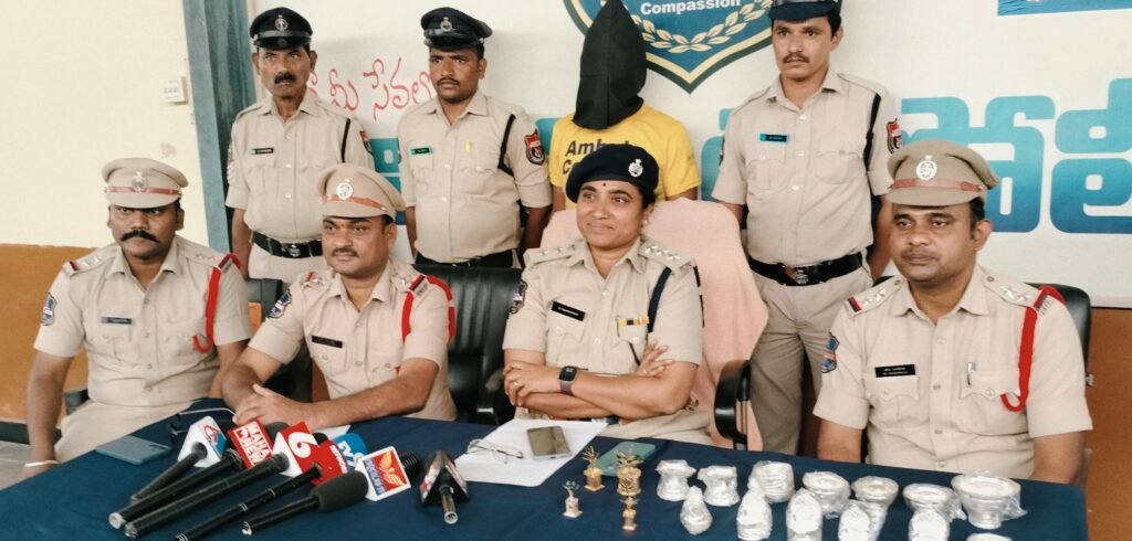 దొంగను అరెస్టు చెబుతున్న ఏసిపి మాధవి పక్కన సిఐ…