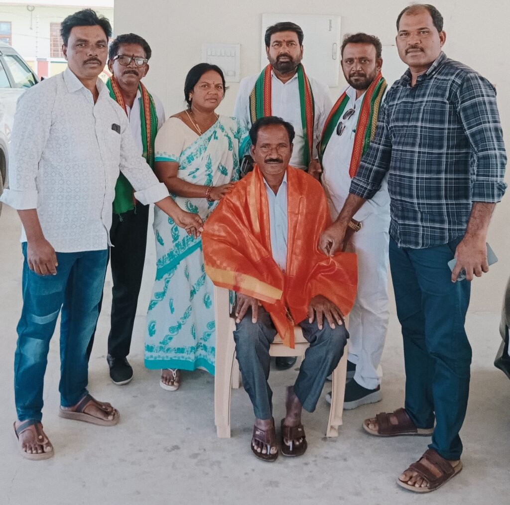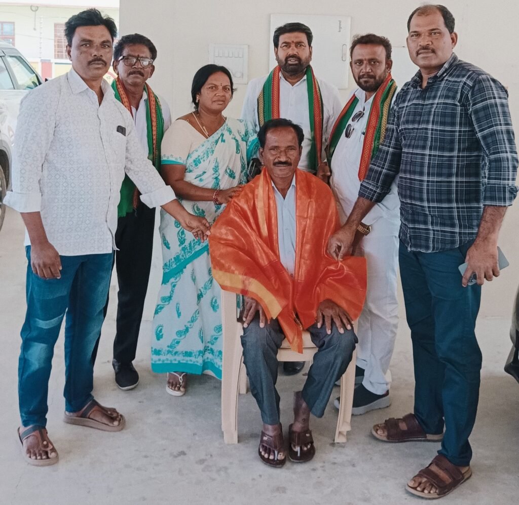 ఆదివాసి తోటి సంఘానికి రాష్ట్ర కోశాధికారిగా ఎంపికైన కరీంనగర్ జిల్లా హుజురాబాద్ మండలంలోని గణేష్ నగర్ కు చెందిన చెడుమాకి బిక్షపతిని శాలువాతో సత్కరించి తెలంగాణ జాగృతిలోకి ఆహ్వానిస్తున్న తెలంగాణ ఆదివాసి జాగృతి రాష్ట్ర అధ్యక్షులు లోకిని రాజు, ఇతర నాయకులు..