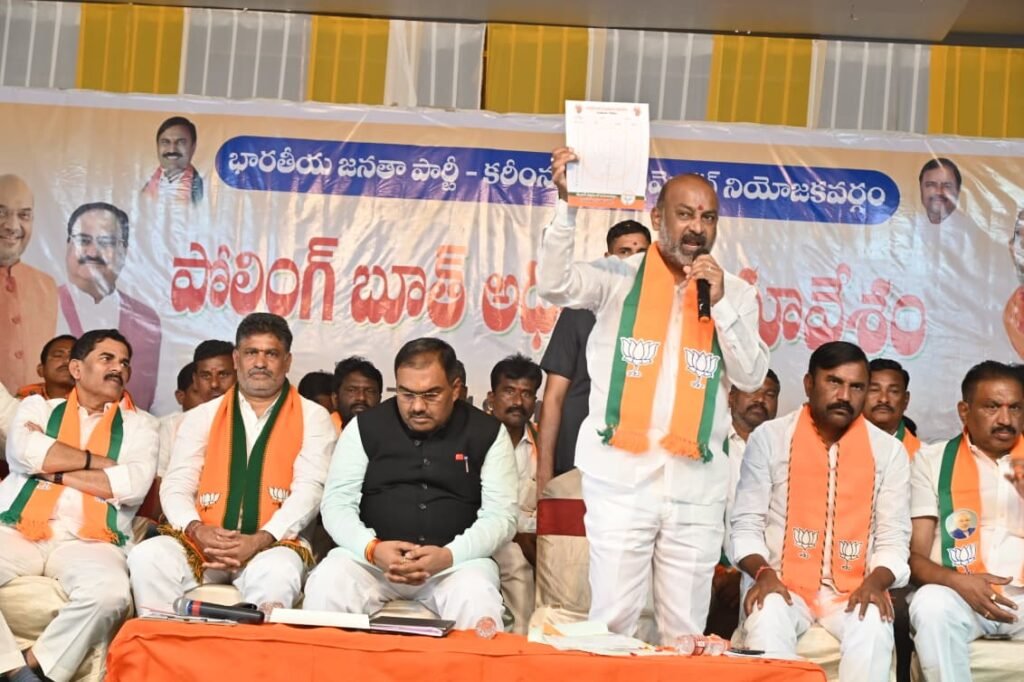 ఈరోజు హుజూరాబాద్ పట్టణంలోని మధువని గార్డెన్ లో కరీంనగర్ పార్లమెంట్ నియోజకవర్గస్థాయి పోలింగ్ బూత్ అధ్యక్షులు ఆ పైస్థాయి నాయకుల సమావేశానికి హాజరైన కేంద్ర మంత్రి బండి సంజయ్ కుమార్ తోపాటు పార్టీ రాష్ట్ర సంఘటనా మంత్రి చంద్రశేఖర తివారీ, ఎమ్మెల్సీ అంజిరెడ్డి, కరీంనగర్ ఇంఛార్జీ గంగిడి మనోహర్ రెడ్డి, కరీంనగర్, సిరిసిల్ల జిల్లాల అధ్యక్షులు గంగాడి క్రిష్ణారెడ్డి, రెడ్డబోయిన గోపి, మాజీ ఎమ్మెల్యే బొడిగె శోభ, తదితరులు ఈ సమావేశానికి హాజరయ్యారు. ఈ సందర్భంగా కాంగ్రెస్ వైఫల్యాలపై రూపొందించిన ‘కరపత్రం’తోపాటు సంతకాల సేకరణ పత్రాలను విడుదల చేశారు. కాంగ్రెస్ రెండేళ్ల పాలనా, బీఆర్ఎస్ పాలనా వైఫల్యాలపై ఈనెల 26న కరీంనగర్ పార్లమెంట్ పరధిలో ఇంటింటికీ వెళ్లి సంతకాల సేకరణ చేస్తామని ప్రకటించారు. ఈ సందర్భంగా కేంద్ర మంత్రి బండి సంజయ్ కుమార్ చేసిన ఉద్వేగ భరిత ప్రసంగంలోని ముఖ్యాంశాలు…