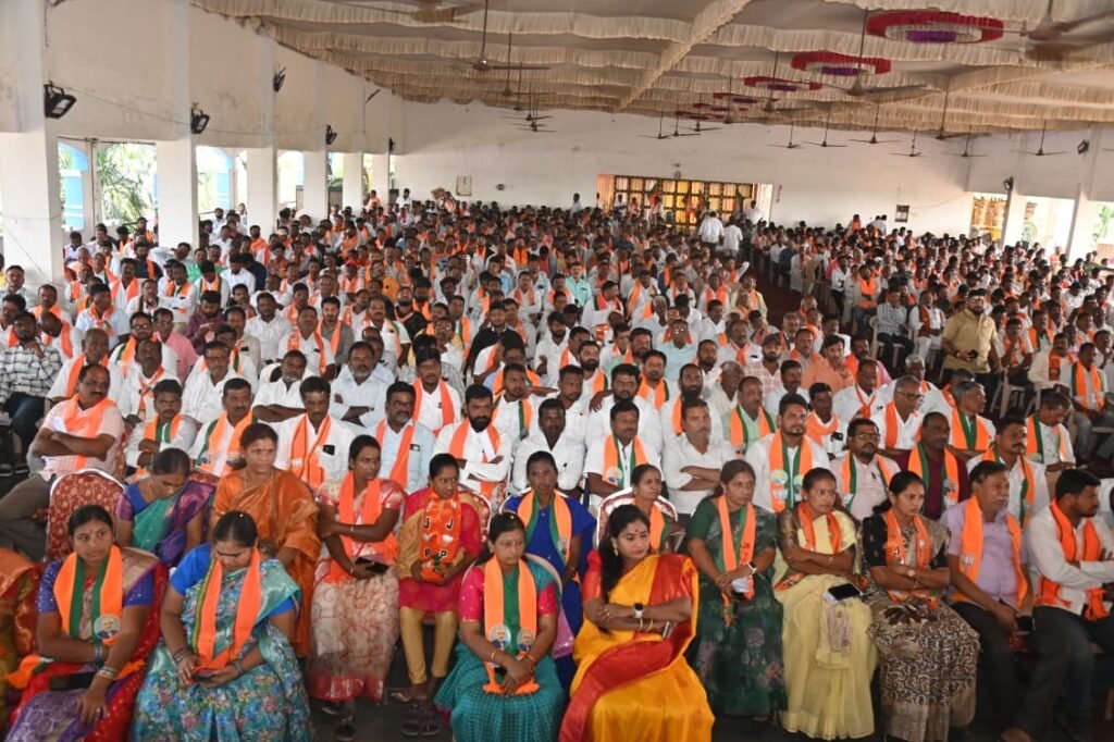 హుజూరాబాద్ పట్టణంలోని మధువని గార్డెన్ లో కరీంనగర్ పార్లమెంట్ నియోజకవర్గస్థాయి పోలింగ్ బూత్ అధ్యక్షులు, ఆ పైస్థాయి నాయకుల సమావేశానికి హాజరైన నాయకులు, కార్యకర్తలు
