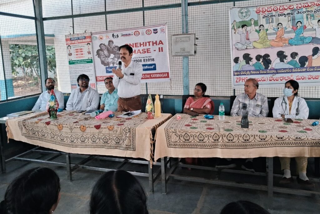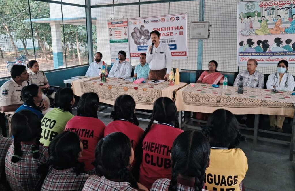 మండల యాదగిరి, స్వర్ణోదయం ప్రతినిధి హుజురాబాద్: జిల్లా కలెక్టర్ ఆదేశాల మేరకు జిల్లా వైద్యాధికారి డాక్టర్ వెంకటరమణ, జిల్లా ఉపవైద్యాధికారి డాక్టర్ చందు స్నేహిత-2 ప్రోగ్రాంను హుజురాబాద్ పట్టణంలోని జిల్లా పరిషత్ బాలుర ఉన్నత పాఠశాలలో నిర్వహించారు. ఈ సందర్భంగా విద్యార్థులకు బాల్యము, కౌమార దశలో పిల్లలు ఎదుర్కొన్నటువంటి గుడ్ టచ్ బ్యాచ్ వంటి అంశాలపై పిల్లలకు పూర్తిస్థాయిలో అవగాహన కల్పించారు. వ్యక్తిగత పరిశుభ్రతపై కూడా విద్యార్థులకు పూర్తిస్థాయిలో అవగాహన కల్పించారు. ప్రతి ఒక్కరూ కౌమార దశలో ఎదురయ్యే సమస్యలపై కనీస అవగాహన కలిగి ఉండాలని విద్యార్థులకు సూచించారు. మానవ అక్రమ రవాణాను అరికట్టేందుకు స్నేహిత కార్యక్రమం ఉపయోగపడుతుందన్నారు. యువతులు గుడ్ టచ్ బ్యాడ్ టచ్ పసిగట్టాలని ఎవరైనా కానీ బ్యాట్ టచ్ చేసినట్లయితే వెంటనే తల్లిదండ్రులకు కానీ ఉపాధ్యాయులకు గాని, అధికారులకు గాని తెలియజేయాలన్నారు. వ్యక్తిగత పరిశుభ్రత తప్పనిసరిగా ప్రతి ఒక్కరు పాటించాలని వారు సూచించారు. ఈ కార్యక్రమంలో వివిధ డిపార్ట్మెంట్లకు సంబంధించిన అధికారులు పాల్గొని వారి వీధులను వివరించి వారిని ఉపయోగించుకోవాలని సూచించారు. ప్రతి పాఠశాల స్థాయిలో స్నేహిత టీమ్స్ ఏర్పాటు చేయడం జరిగిందన్నారు. ఈ కార్యక్రమంలో సిడిపిఓ సుగుణ, మెడికల్ ఆఫీసర్ డాక్టర్ తులసీదాస్, డాక్టర్ జరీనా, మండల విద్యాధికారి శ్రీనివాస్, పాఠశాల ప్రధానోపాధ్యాయులు సమ్మిరెడ్డి, అంగన్వాడీ సూపర్వైజర్లు, ఏఎన్ఎంలు, ఆశాలు, విద్యార్థులు పాల్గొన్నారు.