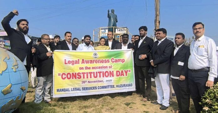 మండల యాదగిరి, స్వర్ణోదయం ప్రతినిధి హుజురాబాద్: భారత రాజ్యాంగ దినోత్సవాన్ని హుజురాబాద్ కోర్టులో సబ్ జడ్జీ పి.బి.కిరణ్ కుమార్ ఆధ్వర్యంలో బుధవారం ఘనంగా నిర్వహించారు. న్యాయమూర్తులు, న్యాయవాదుల పెద్ద ఎత్తున కోర్ట్ నుండి ర్యాలీగా వెళ్లి అంబేద్కర్ విగ్రహానికి పూలమాలలు వేశారు. ఈ సందర్భంగా సబ్ జడ్జీ పి బి కిరణ్ కుమార్ మాట్లాడుతూ భారత రాజ్యాంగం అమలయ్యేలా చూడటం ప్రతీ ఒక్కరి బాధ్యత అన్నారు. అదే విధంగా హక్కులతో పాటు పౌరులందరూ బాధ్యతలను కూడా నిర్వర్తించాలని పిలుపునిచ్చారు. ఈ కార్యక్రమంలో జూనియర్ సివిల్ జడ్జీ పద్మ సాయిశ్రీ, బార్ అసోసియేషన్ అధ్యక్షుడు వై అరుణ్ కుమార్, ఏజీపీ గుర్రం శ్రీనివాస్ గౌడ్, న్యాయవాదులు ముక్కెర రాజు, నల్ల భూంరెడ్డి, కేతిరి శ్రీనివాస్ రెడ్డి, బండి రవీందర్, కొత్తూరు రమేష్, మట్టెల తిరుపతి, శివరామకృష్ణ, భాగోతం కుమారస్వామి, ఎం. విక్రమ్, సిహెచ్ భానుకిరణ్, శ్రీరాం, శిరీష, కోర్టు, పోలీసు సిబ్బంది పాల్గొన్నారు.