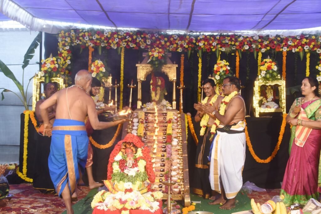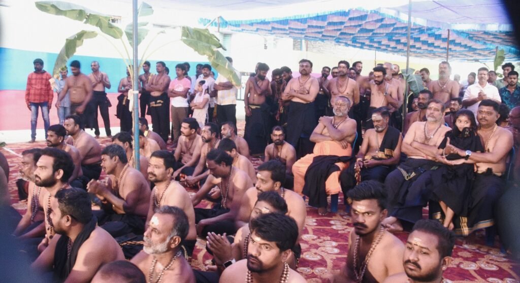 కాళ్ల సంతోష్ గురుస్వామి నిర్వహిస్తున్న పడిపూజ వద్ద పెద్ద ఎత్తున పాల్గొన్న అయ్యప్పస్వాములు, భక్తులు..