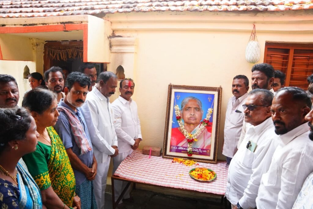 ,మండల యాదగిరి, స్వర్ణోదయం ప్రతినిధి హుజూరాబాద్: ఇటీవల అనారోగ్యంతో మృతి చెందిన హుజురాబాద్ మండలం చెల్పూర్ గ్రామానికి చెందిన పోలంపల్లి సమ్మక్క కుటుంబ సభ్యులను ఆదివారం మల్కాజ్ గిరి ఎంపీ ఈటెల రాజేందర్ సందర్శించి పరామర్శించారు. సమ్మక్క మృతి పట్ల తన ప్రగాఢ సానుభూతిని తెలిపారు. సమ్మక్క కుమారులైన మాజీ సర్పంచ్ పోలంపల్లి శ్రీనివాస్ రెడ్డి, చిన్నక్క విజయలత, ప్రభుత్వ ఉపాధ్యాయుడు ఆదర్శనురెడ్డిలతో మాట్లాడి సంతాపం తెలిపారు. కాగా ఈటెల వెంట పలువురు నాయకులు ఉన్నారు.