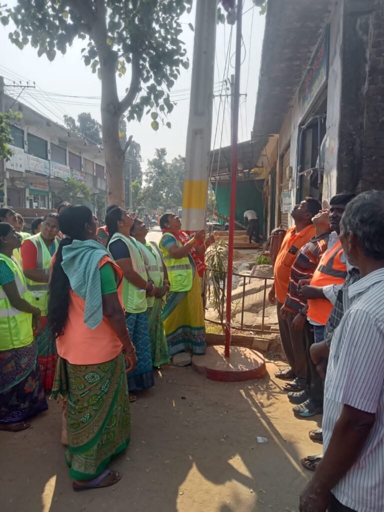 మండల యాదగిరి, స్వర్ణోదయం ప్రతినిధి హుజురాబాద్: ఆల్ ఇండియా మహాసభ డిసెంబర్ 31 2025 నుండి జనవరి 4 వరకు విశాఖపట్నంలో జరిగే మహాసభ సందర్భంగా రాష్ట్ర కమిటీ పిలుపు మేరకు ఈ రోజు హుజురాబాద్ మున్సిపల్ ఆవరణలో తెలంగాణ మున్సిపల్ వర్కర్స్ అండ్ ఎంప్లాస్ యూనియన్ (సిఐటియు) అద్వర్యలో జెండా ఆవిష్కరణ చేయడం జరిగింది. ఈ కార్యక్రమంలో యూనియన్ అధ్యక్షులు అజ్జు, జిల్లా ఉపాధ్యక్షురాలు రాసపెల్లి సరోజన, జిల్లా కార్యదర్శి బొరగల కుమార్ (రాజు), సులోషణ, రాజేశ్వరీ, వినోద, కుమార్, బండ స్వామి, అన్నపూర్ణ, కార్మికులు పాల్గోన్నారు.