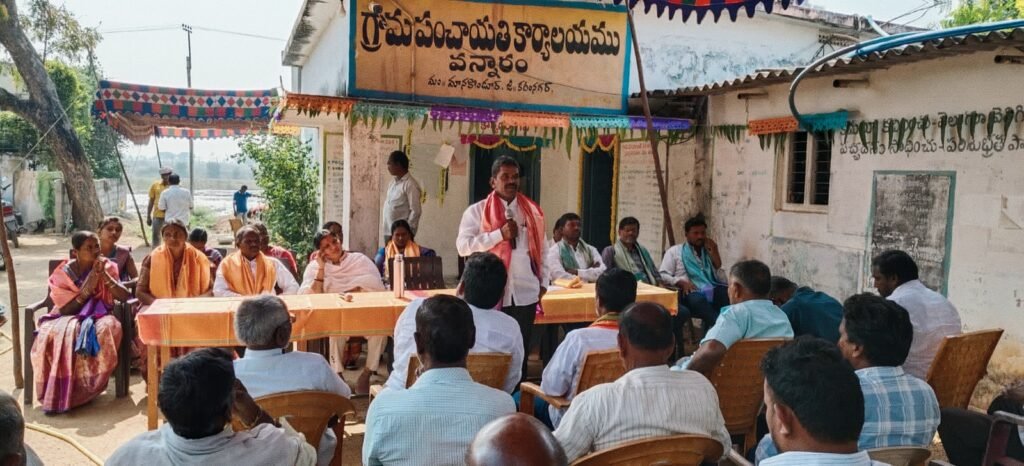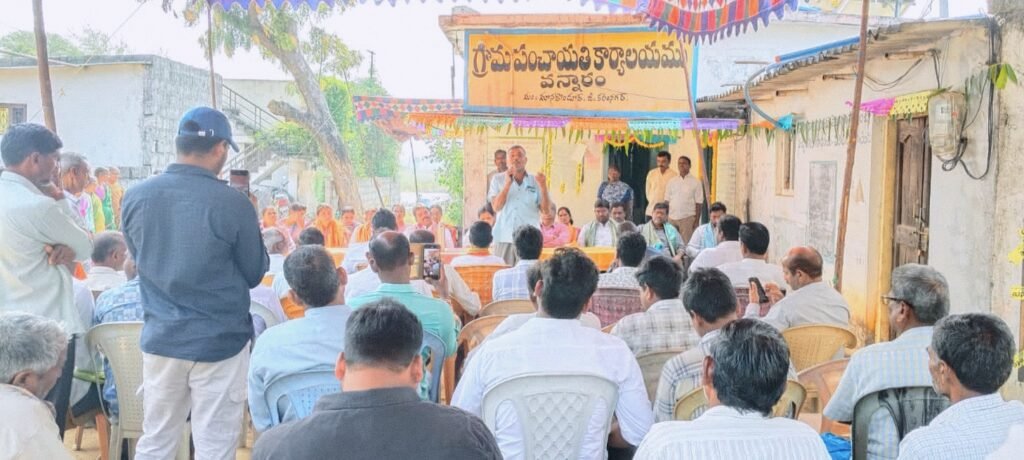 గ్రామస్తుల ఉద్దేశించి మాట్లాడుతున్న సినియర్ సిటిజన్ ప్రజాసంఘాల నాయకుడు పోలాడి రామారావు