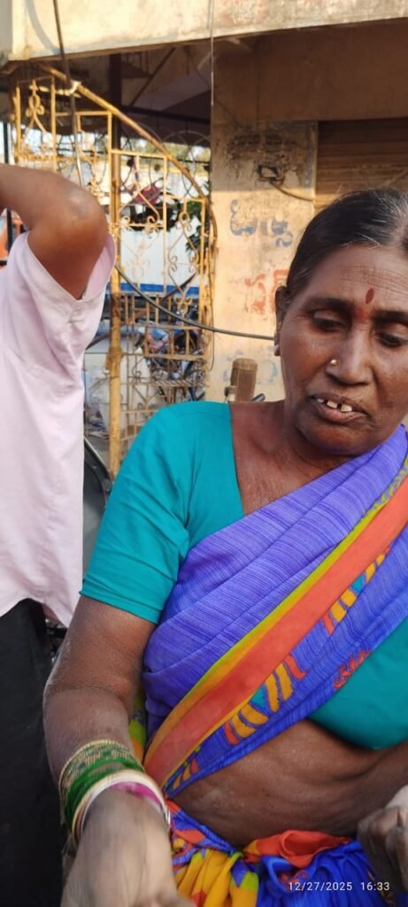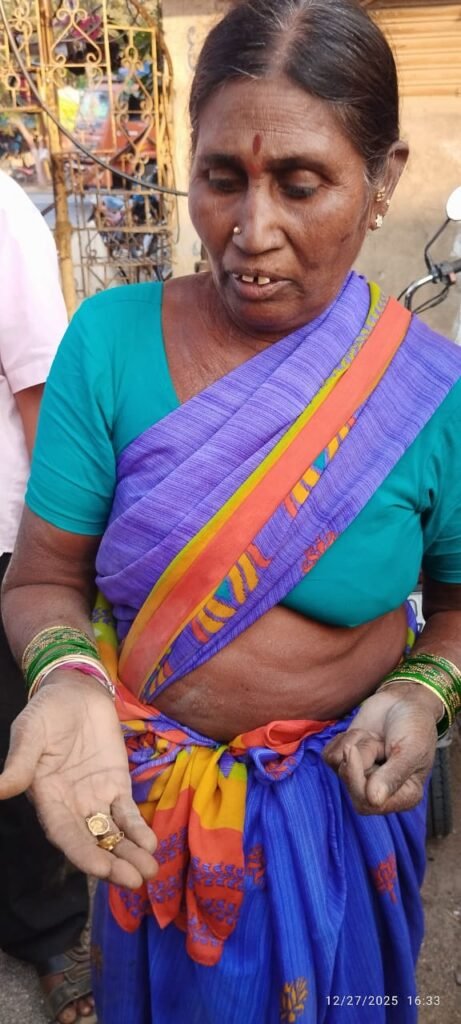 దొంగ మెడలో తాడు లాగడంతో పుస్తెలు కింద పడడంతో చూపుతున్న వృద్ధురాలు