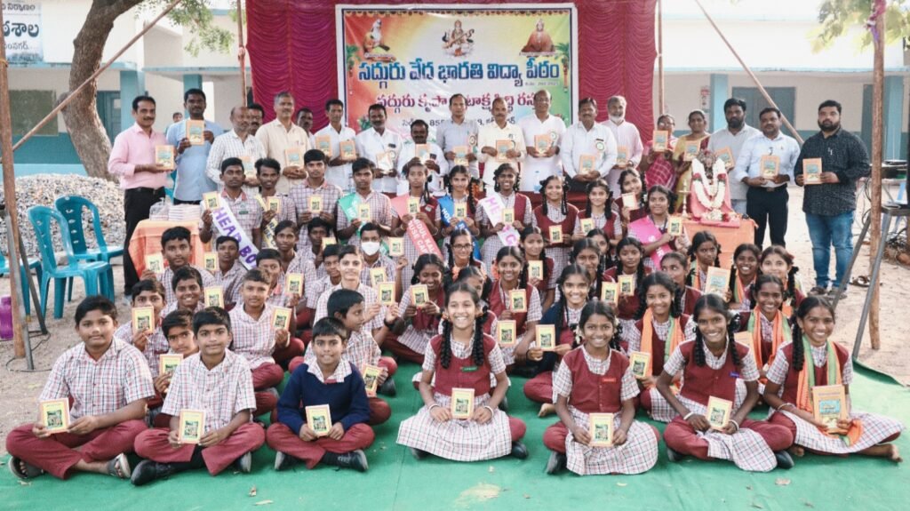భగవద్గీత పుస్తకాలతో విద్యార్థులు..
