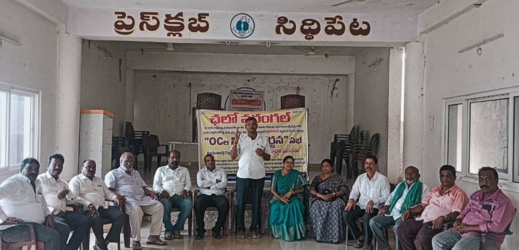 వరంగల్ జిల్లా హన్మకొండలోని ఆర్ట్స్ అండ్ సైన్స్ కాలేజీ మైదానంలో రెడ్డి, వైశ్య, వెలమ, బ్రాహ్మణ, కమ్మ, మార్వాడి సంఘాలతో ఏర్పడిన రాష్ట్ర ఓసి జేఏసీ ఆధ్వర్యంలో ఈ సభను నిర్వహించనున్నట్లు తెలిపారు. ఈ నేపథ్యంలో సోమవారం సిద్ధిపేటలో జిల్లా స్థాయి ఓసి ఐకాస నాయకుల సన్నాహక సమావేశం నిర్వహించగా, వివిధ సామాజిక వర్గాల నాయకులు పాల్గొన్నారు.