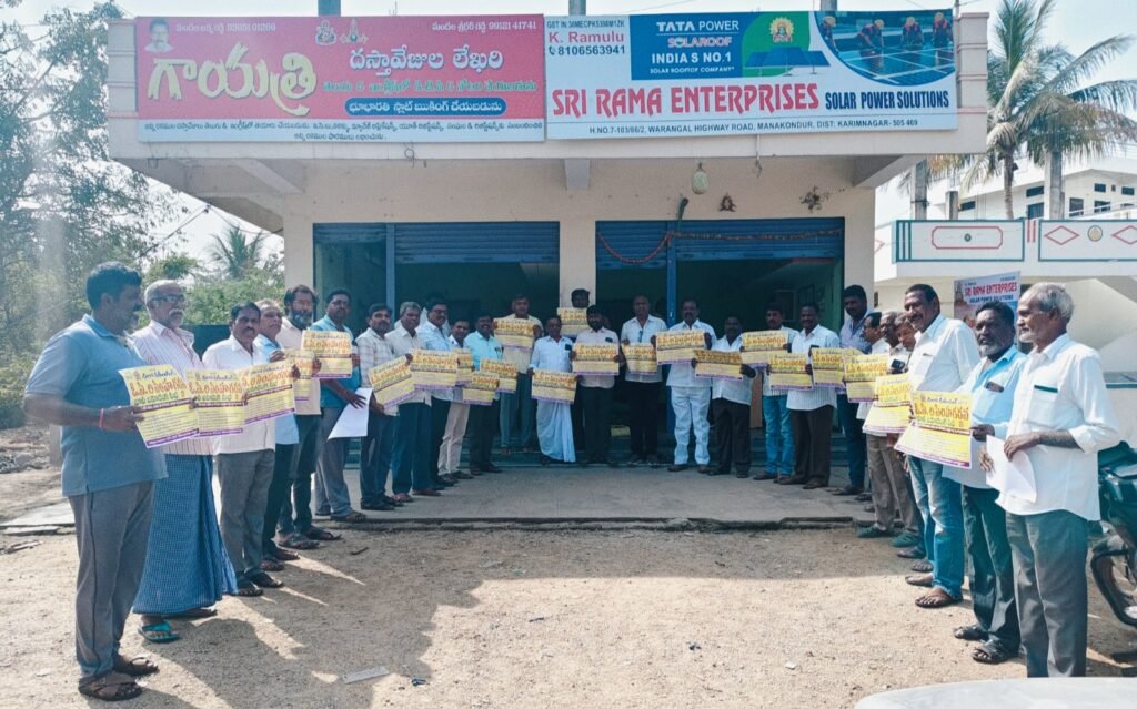 ఈ సందర్భంగా సభకు సంబంధించిన గోడప్రతులు, కరపత్రాలను ఆవిష్కరిస్తున్న రామారావు, ఇతర అతిధులు..