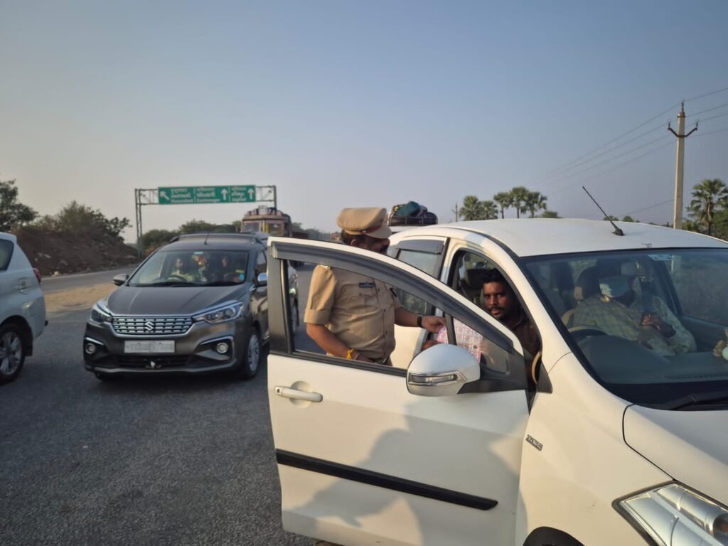 కారు డ్రైవర్లకు కరపత్రాలు పంపిణీ చేసి అవగాహన కల్పిస్తున్న ఎంవిఐ కంచి వేణు..
