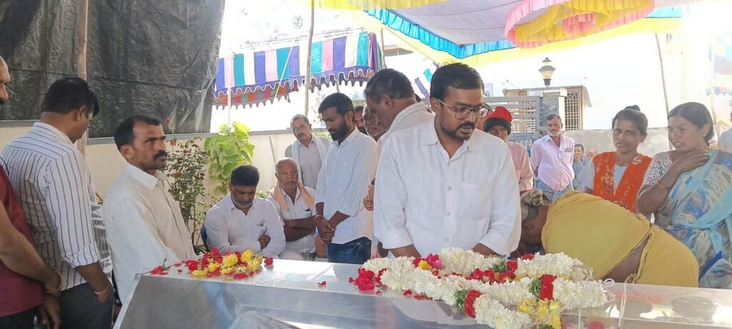 పార్థివ దేహంపై పూలమాల వేసి నివాళులర్పిస్తున్న పార్టీ జిల్లా అధ్యక్షులు కృష్ణారెడ్డి..