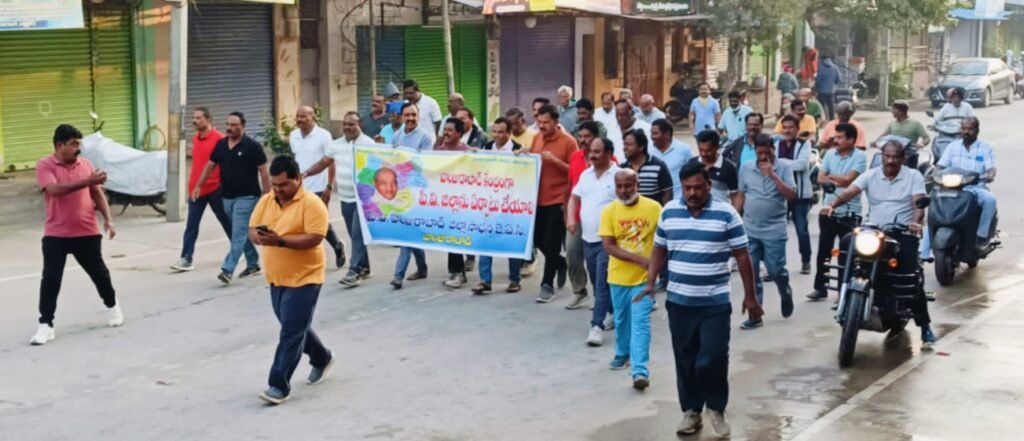 మండల యాదగిరి, స్వర్ణోదయం ప్రతినిధి హుజురాబాద్: హుజూరాబాద్ పీవి జిల్లాను ఏర్పటు చేయాల్సిందేనని పివి జిల్లా సాదన సమితి నాయకులు ప్రభుత్వాన్ని డిమాండ్ చేశారు. హుజూరాబాద్లో గురువారం వాకర్లతో కలసి భారీ ర్యాలీ నిర్వహించారు. హైస్కూల్ క్రీడా మైదానం నుండి అంబేద్కర్ చౌరస్థా మీదుగా పీవి విగ్రహం వరకు ర్యాలీ సాగింది. ఈ సందర్బంగా నాయకులు మాట్లాడుతూ హుజూరాబాద్ మండలానికి జిల్లాకు కావలసిన నైసర్గిక స్వరూపం, వనరులు ఉన్నప్పటికి రాజకీయ కుట్రల కారణంగా పీవీజిల్లా ఏర్పాటు జరుగలేదన్నారు. ఎంతో కాలంగా ఉద్యమం చేస్తున్నా పాలకులు పట్టించుకోవటం లేదని ఆవేదన వ్యక్తం చేశారు. ఉద్యమాన్ని ఉదృతం చేస్తామని, పీవీజిల్లా ఏర్పాటు చేసేంతవరకు ఉద్యమాన్ని వివిద రూపాలలో విస్త్రుతంచేస్తామని ప్రకటించారు. నాడు పాలన సౌలభ్యం కోసం 33 జిల్లాలు ఏర్పాటు చేసిన సందర్బంగా హుజూరాబాద్ కేంద్రంగా జిల్లా ఏర్పాటు చేయాలని అనేక మార్లు విన్నవించుకున్నామన్నారు. జిల్లాల పునర్ వ్యవస్థీకరణ కమిటీ ముందుకు, ప్రజా ప్రతినిదులు, మంత్రుల ముందుకు ప్రజల ఆకాంక్షను తీసుకెల్లినా పలితం లేకుండా చేశారన్నారు. ఇటీవల మంత్రులు పొన్నం ప్రభాకర్ తదితరులతో పాటు పార్టీ ఇంచార్జి ప్రణవ్లకు వివరించినప్పుడు వారు సానుకూలంగా స్పందించారన్నారు. త్వరలో హుజూరాబాద్ కేంద్రంగా జిల్లా ఏర్పాటు చేసి ప్రజల ఆకాంక్షను నెరవేర్చాలని కోరారు. ప్రజాస్వమిక వాదులు, ఉద్యమకారులు, వివిద సంఘాల నాయకులు, యువకులు, విద్యార్థులు అందరూ కలసి కార్యచరణ ఏర్పాటు చేసుకొని ముందుకు కదులుతామన్నారు. కార్యక్రమంలో హుజూరాబాద్ పీవీ జిల్లా సాధన సమితి నాయకులు, వాకర్ అసోసియేషన్ సభ్యులు, యువకులు, వివిద పార్టీల నాయకులు, ప్రజా సంఘాల నాయకులు పాల్గొన్నారు.