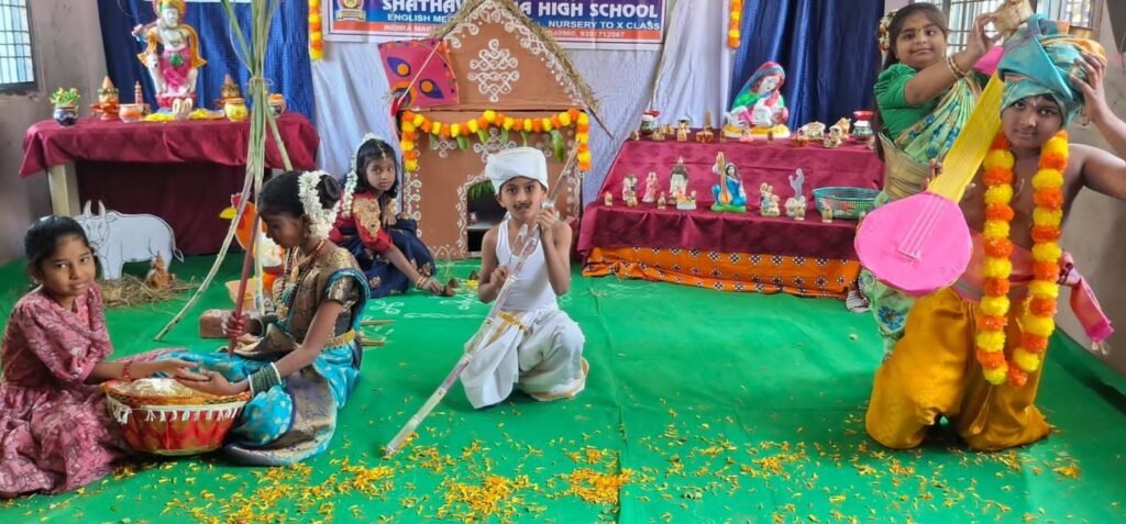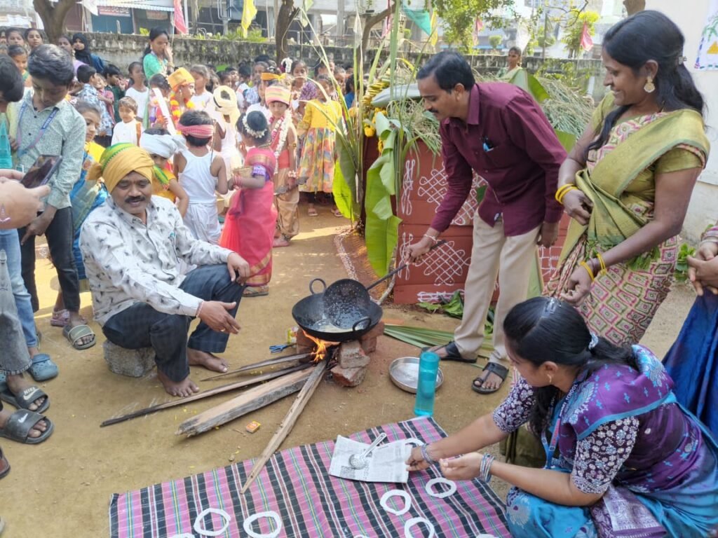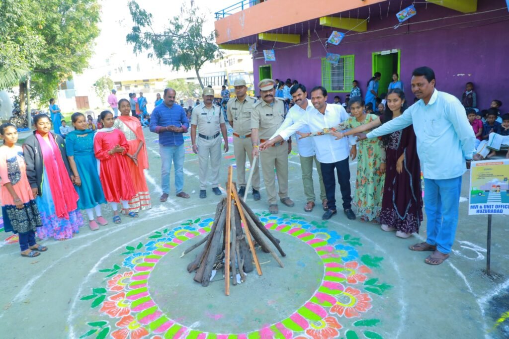 మండల యాదగిరి, స్వర్ణోదయం ప్రతినిధి హుజూరాబాద్: హుజురాబాద్ పట్టణంలోని ప్రభుత్వ ప్రైవేటు విద్యాసంస్థల్లో శుక్రవారం సంక్రాంతి పండుగ వేడుకలు ముందస్తుగా ఆనందోత్సాహాల మధ్య జరిగాయి. ఈ సందర్భంగా పాఠశాలల మైదానాలను చక్కగా ఊడ్చి, అలుకు చల్లి అందమైన ముగ్గులు వేశారు. ఈ సందర్భంగా పలు పాఠశాలలో ముగ్గుల పోటీలను నిర్వహించారు. ముగ్గుల పోటీలలో బాలికలు మహిళా ఉపాధ్యాయురాలు ఉత్సాహంగా పాల్గొన్నారు. ఉత్తమ ముగ్గుకు బహుమతులను పాఠశాల యాజమాన్యాలు అందజేశాయి. పాఠశాల ఆవరణలో సంక్రాంతి పండుగ వాతావరణం తలపించే విధంగా అలంకరణలు చేశారు గుడిసే, గొబ్బెమ్మలు, బొమ్మల కొలువు, హరిదాసు వేషధారణలు, సోది చెప్పే శోదమ్మ వేషధారణలు, బాలికల సాంప్రదాయ దుస్తులతో పాఠశాలల ఆవరణమంతా పండుగ వాతావరణం నెలకొంది. సంక్రాంతి పండుగ సందర్భంగా ప్రతి ఇంట్లో చేసే వంటకాల గురించి పిల్లలకు వివరించారు. ఈ సందర్భంగా పలు పాఠశాలలో సాంస్కృతిక కార్యక్రమాలు అందరిని అలరించాయి. భోగి మంటలు వేసి దాని చుట్టూ పిల్లలు ఉపాధ్యాయులు ఉత్సాహంగా నృత్యాలు చేశారు. విజ్ఞాన్ స్కూల్లో ఎంవీఐ కంచి వేణు పాల్గొనగా..ఆయా కార్యక్రమంలో ప్రైవేటు పాఠశాలల కరస్పాండెంట్లు వి. వెంకటేశ్వర్లు, ఎం ప్రసాద్, ఏం నారాయణరెడ్డి పి సతీష్, విన్సెంట్ జార్జి, కోటేశ్వర్ యాదవ్, పి కిరణ్ కుమార్, పి రవీందర్ రెడ్డి, శాజు తామస్, బి రాజకుమార్ తదితరులు పాల్గొన్నారు.