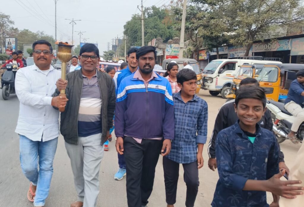 సీఎం కప్ క్రీడాజ్యోతికి స్వాగతం పలుకుతున్న క్రీడాకారులు..