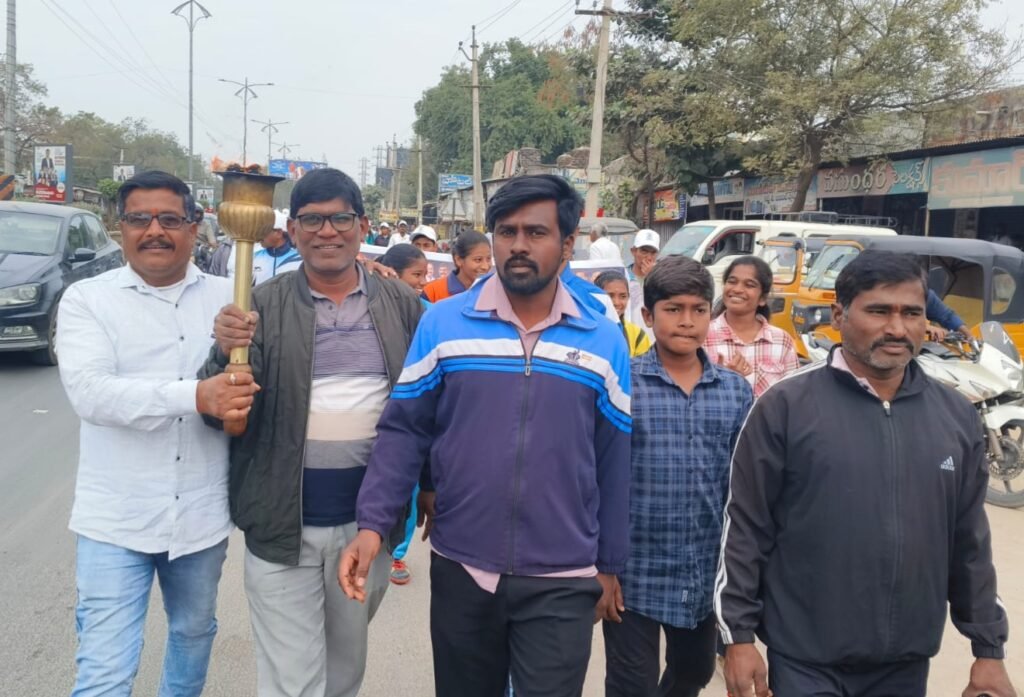సీఎం కప్ క్రీడాజ్యోతికి స్వాగతం పలుకుతున్న బీసీ సంఘం డివిజన్ అధ్యక్షుడు పంజాల తిరుపతి గౌడ్..