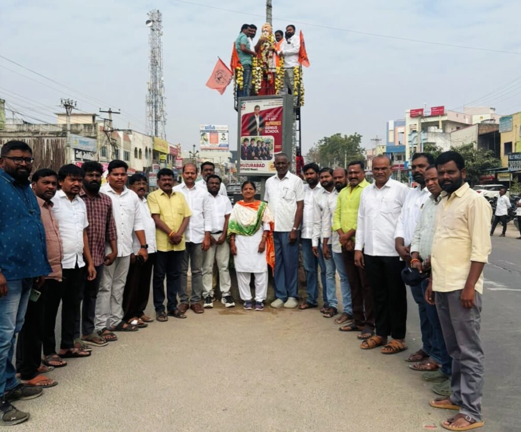 సామాజిక కార్యకర్త కోటోజు జ్యోతిరాణి దండ వేసి నివాళులర్పిస్తున్న దృశ్యం