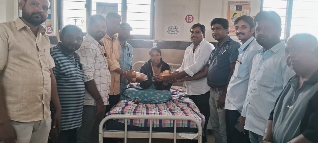 ప్రభుత్వ ఆసుపత్రిలోని పేషంట్లకు, బాలింతలకు పండ్లు, బ్రేడ్లు పంపిణీ చేస్తున్న ఉప సర్పంచ్ల ఫోరం అధ్యక్షుడు వన్నాల శివాజీ, ఇతర ఉప సర్పంచ్లు, నాయకులు..