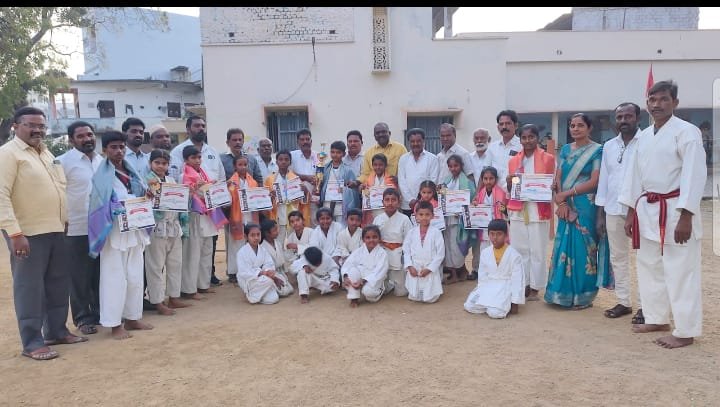 జాతీయస్థాయి కరాటే పోటీల్లో ప్రతిభ చూపించిన విద్యార్థులను సన్మానిస్తున్న అతిథులు…