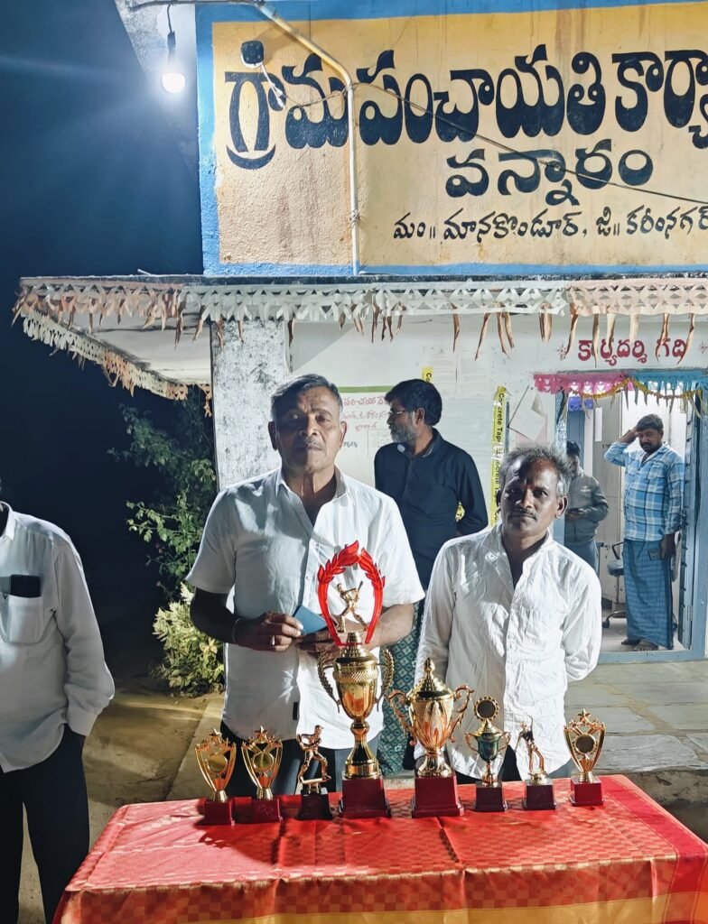 శుక్రవారం కరీంనగర్ జిల్లా మానకొండూర్ మండలంలోని వన్నారం గ్రామ సర్పంచ్ తాళ్ళపల్లి సంపత్ ఆధ్వర్యంలో నాలుగు జట్లతో క్రీకెట్ పోటీలను గ్రామ క్రీడా మైదానం లో నిర్వహించారు. ప్రథమ ద్వితీయ స్థానాల్లో నిలిచిన గెలుపొందిన క్రీడాకారుల జట్లకు వన్నారం గ్రామ పంచాయతి ఆవరణలో గ్రామ సర్పంచ్ తాళ్ళపల్లి సంపత్, మాజీ సర్పంచ్ బాకారపు శ్రీనివాస్, ఉప సర్పంచ్ బాకారారపు రాములు, సీనియర్ నాయకుడు బాకారపు తిరుపతిలతో కలిసి బహుమతులను అందజేసి రామారావు మాట్లాడారు. మానకొండూర్ మండలంతో పాటు సమీప మండలాలైన శంకరపట్నం, తిమ్మాపూర్, వీణవంక మండలాల క్రీడాకారులతో వన్నారం గ్రామ క్రీడాకారులు పోటీపడి రాణించడం శుభ పరిణామం అని జిల్లా, రాష్ట్ర స్థాయిలో రాణించడానికి వారికి నా సంపూర్ణ సహకారం అందిస్తానని అన్నీ సౌకర్యాలు స్వంతంగా సమకూర్చుతానని హర్షధ్వానాల మధ్య ప్రకటించారు.