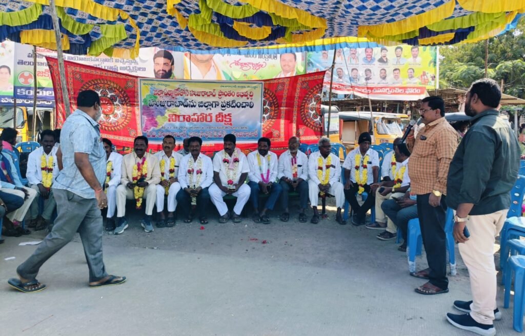 13 మండలాలతో కొత్త జిల్లా..హుజురాబాద్ కేంద్రంగా శంకరపట్నం, సైదాపూర్, జమ్మికుంట, ఇల్లందకుంట, కమలాపూర్, ఎల్కతుర్తి, వేలేరు, భీమదేవరపల్లి, టేకుమట్ల, మొగుల్లపల్లి, చిట్యాల మండలాలను కలుపుతూ జిల్లాను ఏర్పాటు చేయాలన్నారు. పరిపాలనా సౌలభ్యం కోసం చల్లూరు, వావిలాల, ఉప్పల్ గ్రామాలను తక్షణమే కొత్త మండలాలుగా ప్రకటించాలన్నారు. జమ్మికుంట మరియు ఎల్కతుర్తి ప్రాంతాలను కొత్త రెవెన్యూ డివిజన్లుగా మార్చాలన్నారు. 2011 జనాభా లెక్కల ప్రకారం ఈ ప్రాంతంలో 5 లక్షలకు పైగా జనాభా ఉందని, ప్రజల సౌకర్యార్థం జిల్లా ఏర్పాటు అనివార్యమని పేర్కొన్నారు. ఈ దీక్షా కార్యక్రమంలో కళాకారులు రామ్ రాజేశ్వర్, భరత్ ఆలపించిన ఉద్యమ గీతాలు అటు సభికులను, ఇటు ప్రజలను విశేషంగా ఆకట్టుకున్నాయి. జిల్లా ఏర్పాటు వరకు విశ్రమించేది లేదని పలువురు నాయకులు పేర్కొన్నారు. ఈ కార్యక్రమంలో జేఏసీ నాయకులు పలకల ఈశ్వర్ రెడ్డి, పొడిశెట్టి వెంకటరాజం, బండ శ్రీనివాస్, వేల్పుల రత్నం, వేల్పుల ప్రభాకర్, రవీందర్ రావు, ప్రభాకర్ రావు, జగన్నాథం, సాదుల రవీందర్ బాబు, మాడుగుల ఓదేలు, పంజాల రవీందర్ గౌడ్, మోటం రామ్ కుమార్, సందెల వెంకన్న, ఖాలీద్ హుస్సేన్, బండ అశోక్, ధనవర్ష రాజు, మార్తా రవీందర్, పసులు స్వామి, ఫయాజ్, అకినపల్లి శిరీష, మారపల్లి సుశీల, జేఏసీ నాయకులతో పాటు హుజురాబాద్ ప్రెస్ క్లబ్ అధ్యక్షులు కాయిత రాములు , సీనియర్ జర్నలిస్ట్ లు మండల యాదగిరి, పరంకుశం కిరణ్ కుమార్, చిలకమారి సత్యరాజ్, ఇప్పకాయల సాగర్ తదితరులు పాల్గొన్నారు.