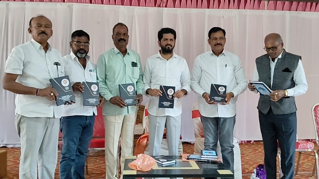 ఆర్టీసీ రిటైర్డ్ ఉద్యోగుల సంఘం 2026కు సంబంధించిన నూతన డైరీని ఆవిష్కరిస్తున్న ప్రణవ్, రవీందర్ రావు, రిటైర్డ్ ఉద్యోగులు