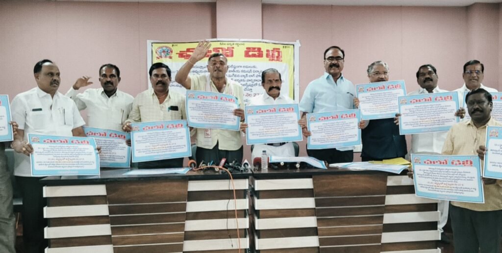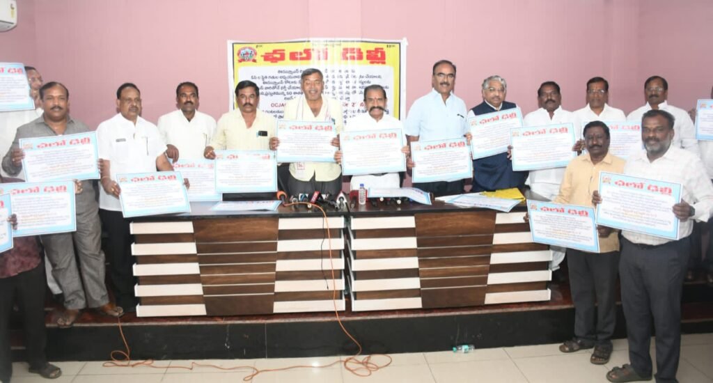 మహాధర్నా గోడ ప్రతులను, కరపత్రాలను ఆవిష్కరిస్తున్న ఓసి జెఏసి జాతీయ అధ్యక్షుడు రామారావు, ఇతర నాయకులు..
