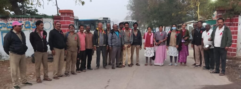 మండల యాదగిరి, స్వర్ణోదయం ప్రతినిధి హుజురాబాద్: కాంగ్రెస్ పార్టీ ఎన్నికల ముందు తమ మేనిఫెస్టో లో పెట్టిన ఆర్టీసీని ప్రభుత్వంలో విలీనం చేయాలని ఆర్టీసీ కార్మికులు అన్నారు. మంగళవారం హుజూరాబాద్ ఆర్టీసీ డిపోలో కార్మికులు ఎర్ర రిబ్బన్లు ధరించి ప్రభుత్వానికి నిరసన తెలిపారు. ఈ సందర్భంగా పలువురు కార్మికులు మాట్లాడుతూ.. ఆర్టీసీలో గతంలో ఉన్న యూనియన్లను పునరుద్ధరణ చేయాలని, రిటైర్డ్ కార్మికులందరికీ రావాల్సిన బకాయిలను తక్షణమే ఇవ్వాలన్నారు. ఆర్టీసీ కార్మికుల ప్రయోజనాలను కాపాడుతామని కాంగ్రెస్ పార్టీ మేనిఫెస్టోలో పెట్టి రెండు సంవత్సరాలకు పైగా అవుతున్నప్పటికీ ప్రభుత్వం ఆ మాట మరిచి పోయిందన్నారు. రిటైర్డ్ ఉద్యోగులకు బకాయిలు ఇవ్వకపోవడం వలన ఎంతోమంది రిటైర్డ్ ఉద్యోగులు మానసిక వేదన అనుభవిస్తున్నారని అన్నారు. రాష్ట్ర జేఏసీ పిలుపుమేరకు పోరాట దినం పాటించినట్లు వారు తెలిపారు. ఈ కార్యక్రమంలో ఆర్టీసీ ఉద్యోగుల ఆర్టీసీ జేఏసీ కన్వీనర్ ఠాకూర్ శివదయాల్ సింగ్, సాదుల కిషోర్, రిటైర్డ్ ఆర్టీసీ ఉద్యోగుల సంఘం అధ్యక్షుడు మార్త రవీందర్, వర్కింగ్ ప్రెసిడెంట్ వేల్పుల ప్రభాకర్, వివిఆర్ రెడ్డి, మోటపోతుల అశోక్, ఏవి రాజం , రాజు, రేనా, సుమలత, లక్ష్మి, మమత, పద్మ తదితరులు పాల్గొన్నారు.