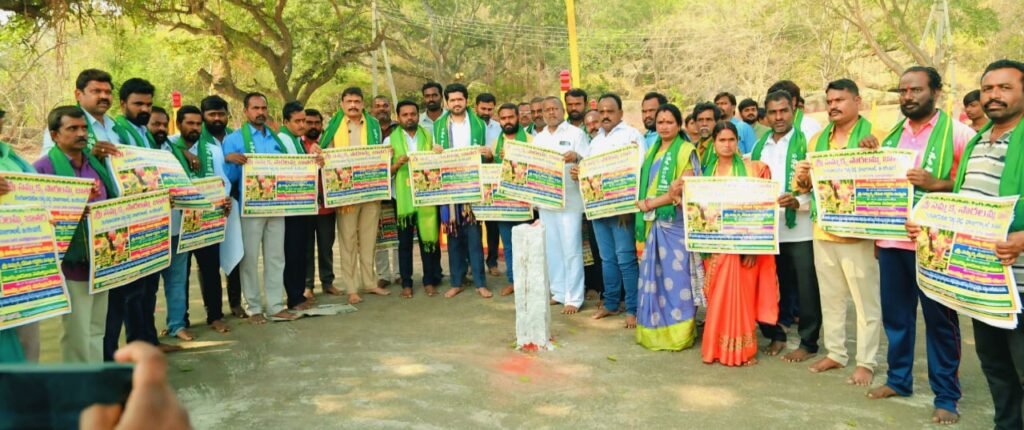 జాతర పోస్టుల ఆవిష్కరిస్తున్న ప్రణవ్ బాబు, సీఐ కరుణాకర్, దేవాదాయ శాఖ ఉద్యోగులు, కమిటీ సభ్యులు..