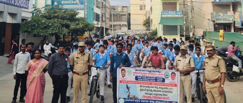 సురక్షితమైన రోడ్లు, సమాజం కోసం కృషి చేయడం. ఈ కార్యక్రమంలో కాకతీయ స్కూల్ ప్రిన్సిపాల్ శ్రీనివాస్, ఉపాధ్యాయులు, విద్యార్థిని విద్యార్థులు కానిస్టేబుల్ కత్తులు నాగరాజు, హోంగార్డ్ బుర్ర సురేష్ తదితరులు పాల్గొన్నారు.
