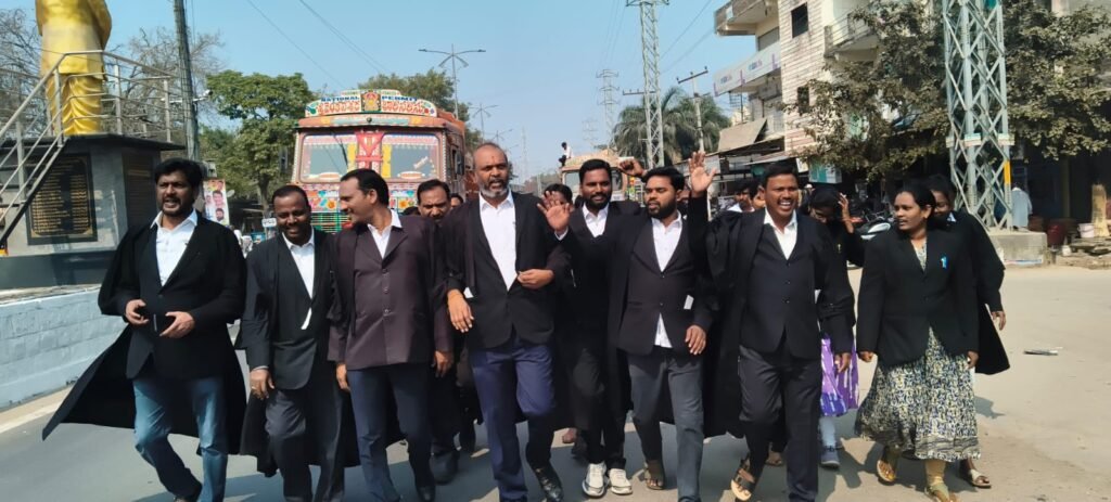 ర్యాలీగా తరలివచ్చి చౌరస్తాలో ధర్నా నిర్వహిస్తున్న న్యాయవాదులు..