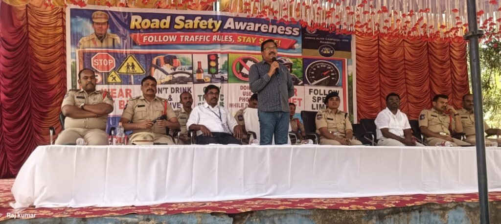 ప్రభుత్వ జూనియర్ కళాశాలలో విద్యార్థులకు రోడ్ సేఫ్టీ అవేర్నెస్ కార్యక్రమంలో మాట్లాడుతున్న ఆర్డీవో రమేష్ బాబు, పక్కన ఏసిపి మాధవి, ప్రిన్సిపల్, సిఐలు ఎస్ఐలు..