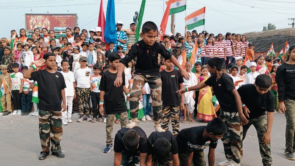 అంబేద్కర్ చౌరస్తాలో ఆల్ ఫోర్స్ పాఠశాల విద్యార్థుల విన్యాసాలు…