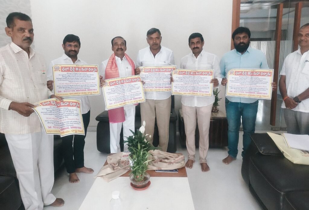 మహా ధర్నా వాల్పోస్టర్ ఆవిష్కరిస్తున్న ఓసి జేఏసీ జాతీయ అధ్యక్షుడు రామారావు, నాయకులు..