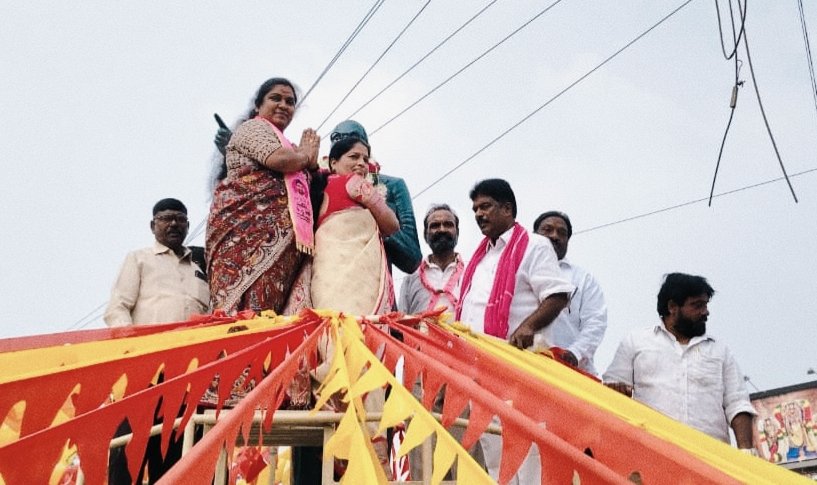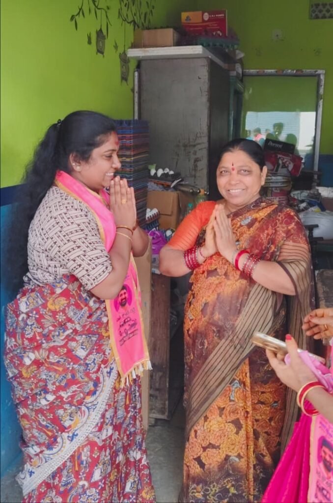 ఆరో వార్డులో తనను గెలిపించాలని విజ్ఞప్తి చేస్తున్న బండ సింధుజ..
