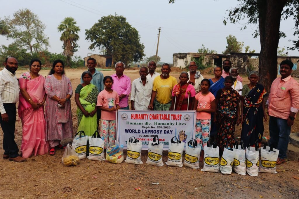 మండల యాదగిరి, స్వర్ణోదయం ప్రతినిధి హుజురాబాద్: హుజురాబాద్ కు చెందిన హ్యూమానిటీ చారిటబుల్ ట్రస్ట్ ఆధ్వర్యంలో జమ్మికుంట మండలం వావిలాల గ్రామంలోని లెప్రసి కాలనీలో కుష్టి వ్యాధిగ్రస్తులకు నిత్యవసర సరుకులు పంపిణీ చేశారు. ఈ సందర్భంగా ట్రస్ట్ నిర్వాహకులు కవిత నవీన్ కుమార్ మాట్లాడుతూ..