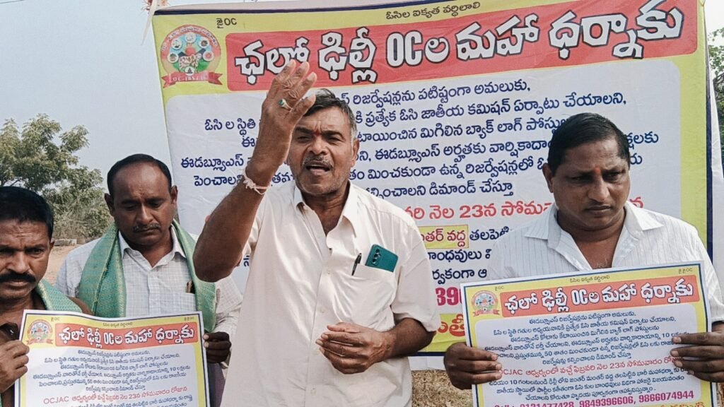 మండల యాదగిరి, స్వర్ణోదయం ప్రతినిధి హుజురాబాద్: ఓసీల హక్కుల న్యాయమైన డిమాండ్ల సాధనకు ఈనెల 23న ఓసి జేఏసీ ఆధ్వర్యంలో ఢిల్లీలో జంతర్ మంతర్ వద్ద జాతీయస్థాయి ఓసిల మహాధర్నా కార్యక్రమాన్ని నిర్వహిస్తున్నట్లు ఓసి సామాజిక సంక్షేమ సంఘాల సమాఖ్య జాతీయ అధ్యక్షుడు పోలాడి రామారావు తెలిపారు.