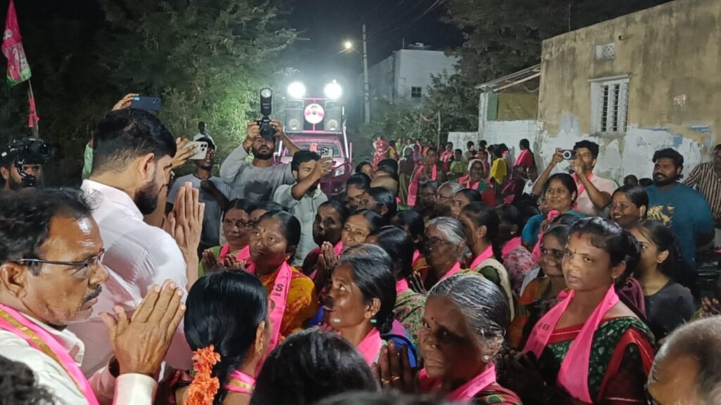 ప్రజల వద్దకు వెళ్లి అభివాదం చేస్తూ నమస్కరిస్తున్న ఎమ్మెల్యే కౌశిక్ రెడ్డి బిఆర్ఎస్ అభ్యర్థి గుంటి వెంకటమ్మ మల్లయ్య…