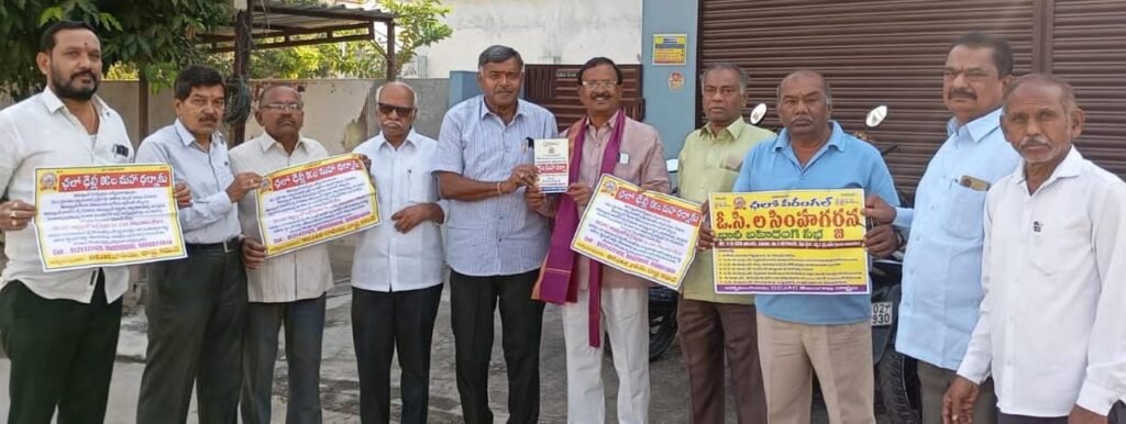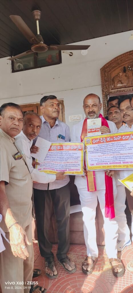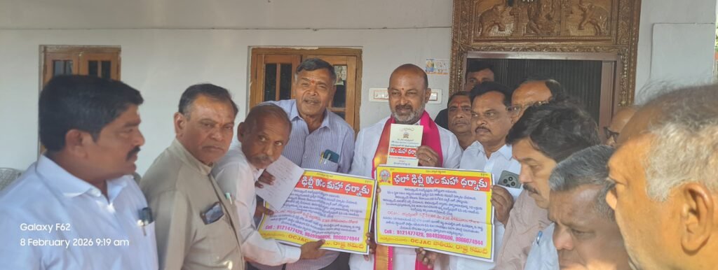 ముద్రించిన గోడ ప్రతులను కేంద్ర మంత్రి బండి సంజయ్ తో ఆవిష్కరింపజేస్తున్న ఓసి జెసి జాతీయ అధ్యక్షుడు రామారావు, ఇతర నాయకులు..