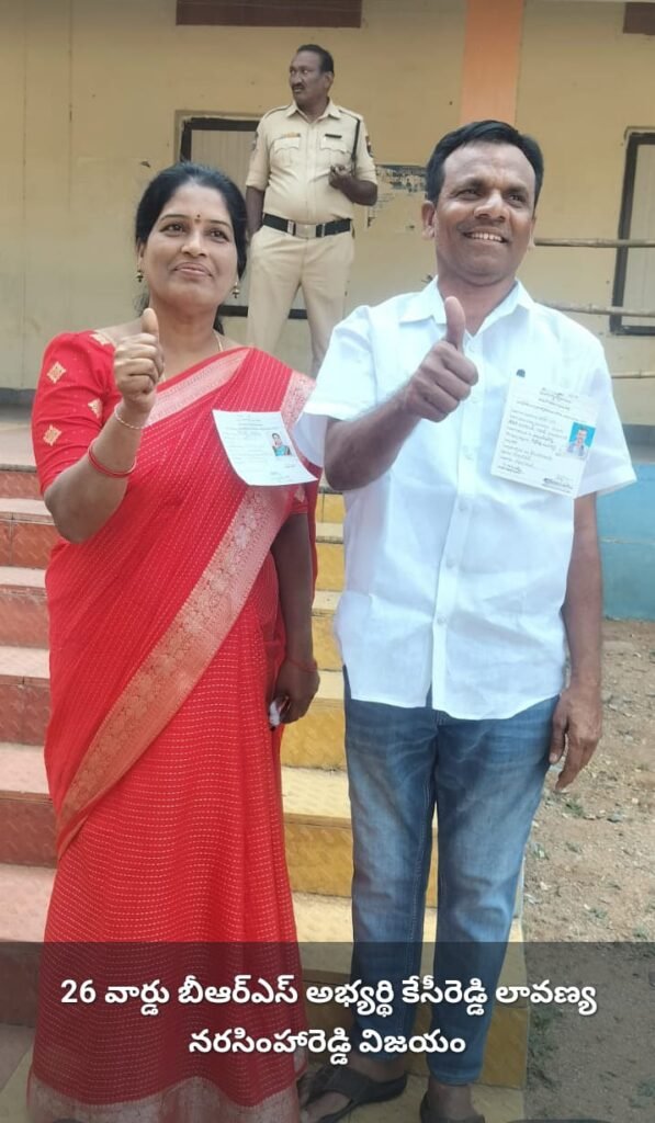 మండల యాదగిరి, స్వర్ణోదయం ప్రతినిధి హుజురాబాద్: మునిసిపల్ ఎన్నికల్లో హుజురాబాద్ 26వ వార్డులో బిఆర్ ఎస్ అభ్యర్థి కేసిరెడ్డి లావణ్య నరసింహారెడ్డి వరుసగా నాలుగో సారి గెలుపొందారు. శుక్రవారం వెలువడిన ఫలితాల్లో సుమారు 100 ఓట్ల మెజారిటీతో ఆమె గెలిచారు. ఆమె గతంలో మేజర్ గ్రామపంచాయతీ వార్డ్ మెంబర్ గా, నగర పంచాయతీ కౌన్సిలర్ గా, మునిసిపాలిటీ కౌన్సిలర్ గా మూడుసార్లు గెలుపొందారు. గతంలో 2006, 2014, 2020 ఎన్నికల్లో వరుసగా గెలుపొందారు. తాజాగా మరోసారి కూడా గెలవడంతో ఆమె నాలుగోసారి గెలిచినట్లయింది. నాలుగు సార్లు కూడా ఒకే పార్టీ, ఒకే వార్డు, ఒక్కరే అభ్యర్ధిగా ఆమె పోటీ చేశారు. నిజానికి కౌన్సిలర్ గా ఒకసారి గెలవడమే కష్టం. అలాంటిది నాలుగో సారి కూడా ఆమె గెలుపొందడం స్థానికంగా సంచలనం సృష్టించింది. ఈ సారి అధికార పార్టీలో లావణ్య లేరు, ఎలాగైనా లావణ్యను ఓడించాలని కాంగ్రెస్, బీజేపీలు గట్టి ప్రయత్నం చేశారు. ఒక్కటి రాష్ట్రంలో ఉన్న అధికార పార్టీ, మరోటి కేంద్ర ప్రభుత్వం పార్టీ ఈ రెండు పార్టీలకు చెందిన ప్రముఖ నాయకులు ధీన్ని గెలవాలని విశ్వ ప్రయత్నాలు చేసిన ఫలించలేదు, ఒకసారి కౌన్సిలర్ గా పని చేస్తేనే ప్రజల్లో తీవ్రమైన అసంతృప్తి వ్యతిరేకత ఉంటాయి. కానీ లావణ్య వాటిని అధిగమించింది. లావణ్య విజయం వెనుక ఆమె కృషితో పాటు ఆమె భర్త ప్రముఖ పాత్రికేయుడు కేసిరెడ్డి నరసింహారెడ్డి కృషి ఉంది. లావణ్య దంపతులు ప్రతినిత్యం ప్రజల్లో ఉండడం, నిరుపేదలకు చేదోడు వాదోడుగా ఉండడం, వార్డులో అభివృద్ధి పనులు, సంక్షేమ కార్యక్రమాలు, హరితహారం తదితర కార్యక్రమాలను నిర్వహించడం చేస్తుంటారు. ఎలాంటి గర్వం అహంకారం లేకుండా నిత్యం ప్రజలకు అందుబాటులో ఉంటారనే పేరు ఉంది. ప్రతినిత్యం పారిశుద్ధ్యం పర్యవేక్షిస్తారు. వార్డును ఆదర్శంగా తీర్చిదిద్దారు. సీసీ రోడ్లు డ్రైనేజీలు వంటి అభివృద్ధి పనులు చేశారు. వ్యాపార కేంద్రంగా ఉన్న 26 వార్డులో ప్రతినిత్యం కనిపిస్తారు. అందరినీ పలకరించడంతో పాటు ప్రతి ఒక్కరికి వారి కుటుంబంలో సభ్యులుగా మెదులుతారు. అలాగే తహసిల్దార్, మునిసిపల్, ఇతర ప్రభుత్వ కార్యాలయాల్లో వార్డులో ప్రజలకు ఏ పని ఉన్న చేసి పెట్టే ప్రయత్నం చేస్తారు. అందువల్లనే వారు ప్రజల్లో పెద్దగా వ్యతిరేకతను ఎదుర్కోలేదు. లావణ్య నరసింహారెడ్డి దంపతులు మాజీ ఎంపీ కెప్టెన్ లక్ష్మీకాంతరావు, మాజీ ఎమ్మెల్యే వి సతీష్ కుమార్ కుటుంబానికి అత్యంత సన్నిహితులుగా ఉన్నారు. గతంలో ఈటెల రాజేందర్, ఇనుగాల పెద్దిరెడ్డి తదితర నేతలతో కూడా కలిసి పనిచేశారు. నాలుగో సారి గెలుపొందిన లావణ్య నరసింహారెడ్డిని పార్టీలకు అతీతంగా అందరూ అభినందిస్తున్నారు. నాలుగోసారి వరుసగా లావణ్య విజయం సంచలనం సృష్టించడమే కాకుండా స్థానిక రాజకీయ వ