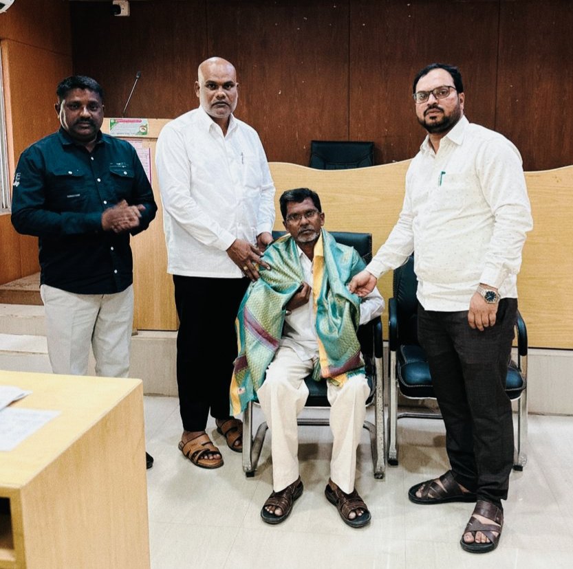వార్డు అధికారి బండ మోహన్ ను ఘనంగా సన్మానిస్తున్న కమిషనర్, మేనేజర్, ఆర్ ఐ లు