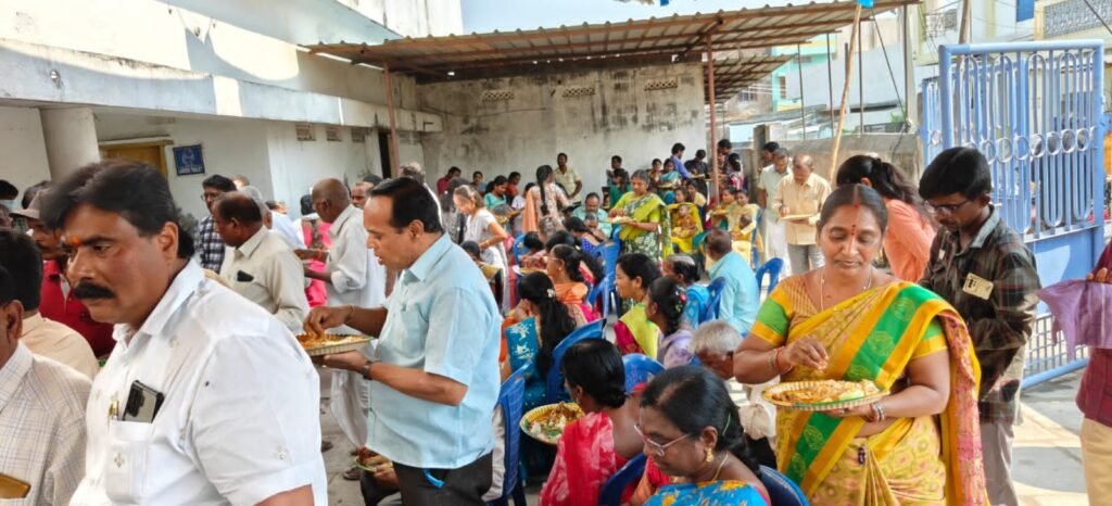 ఆత్మీయ సమ్మేళనముకు హాజరై భోజనాలు చేస్తున్న వార్డు ప్రజలు..